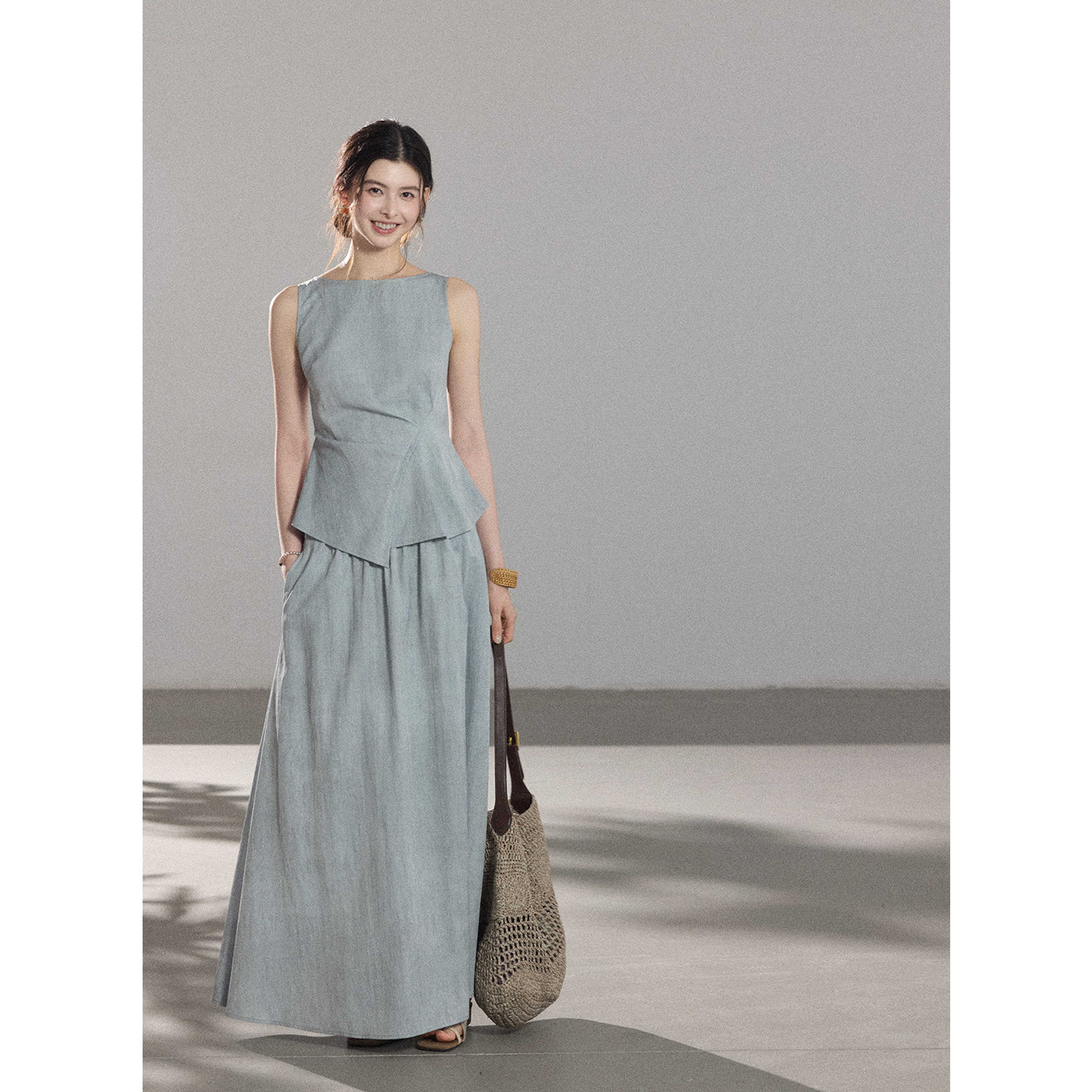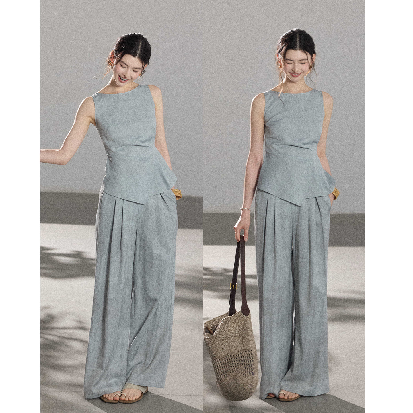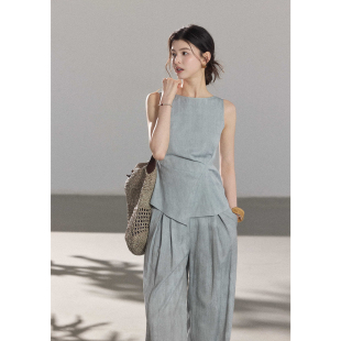 祈夏 半身裙通勤气质套装 高智感清冷无袖 休闲裤 背心 贰羊设计