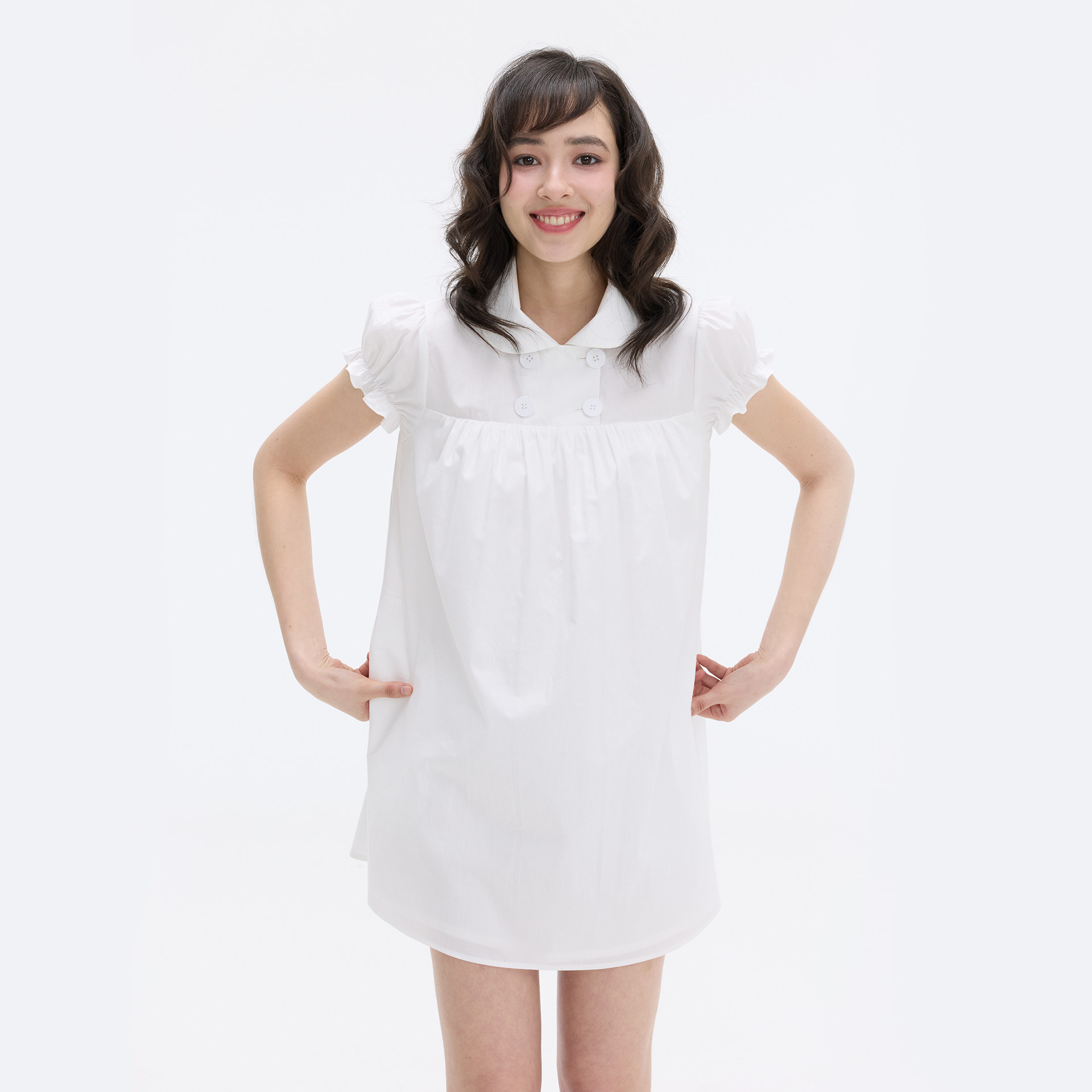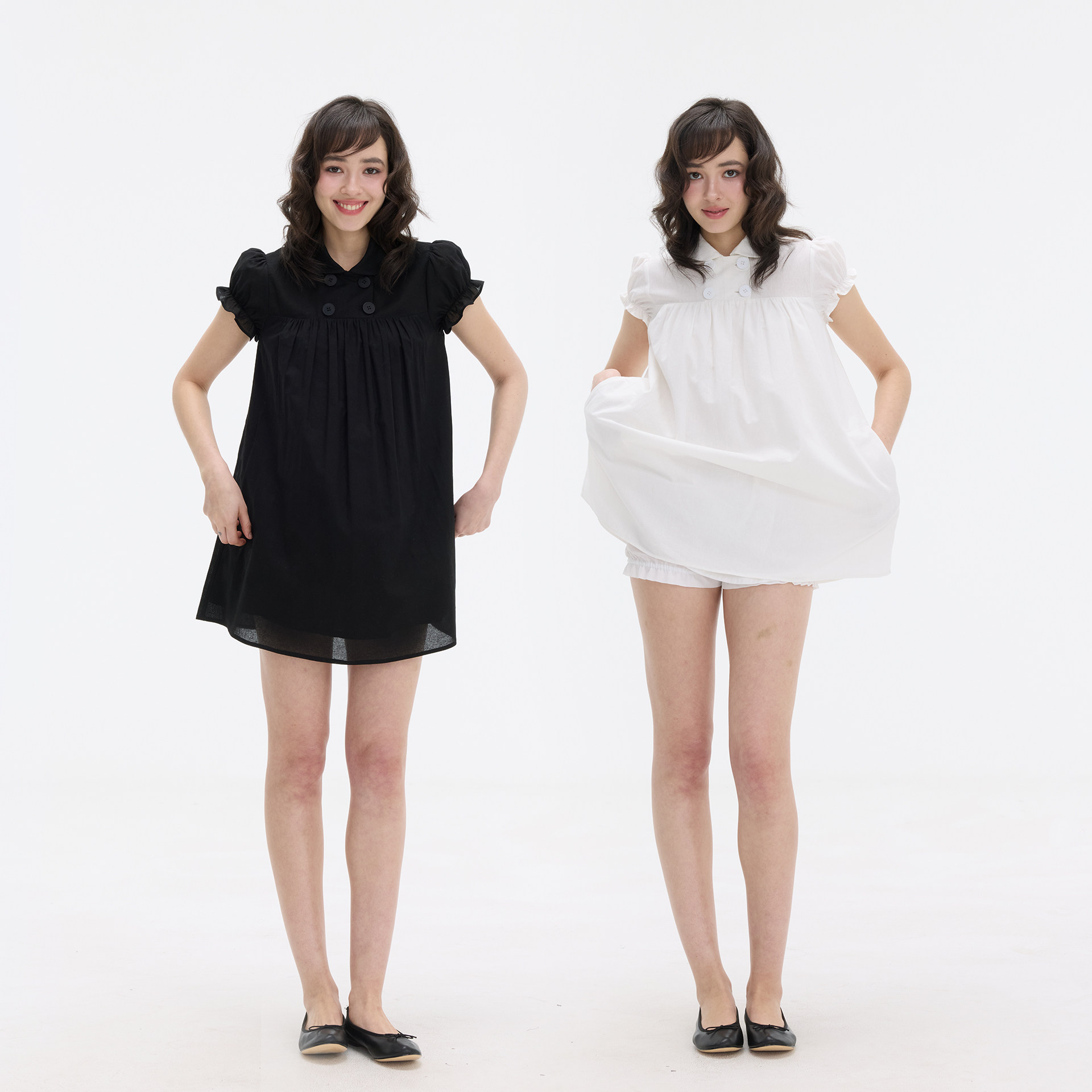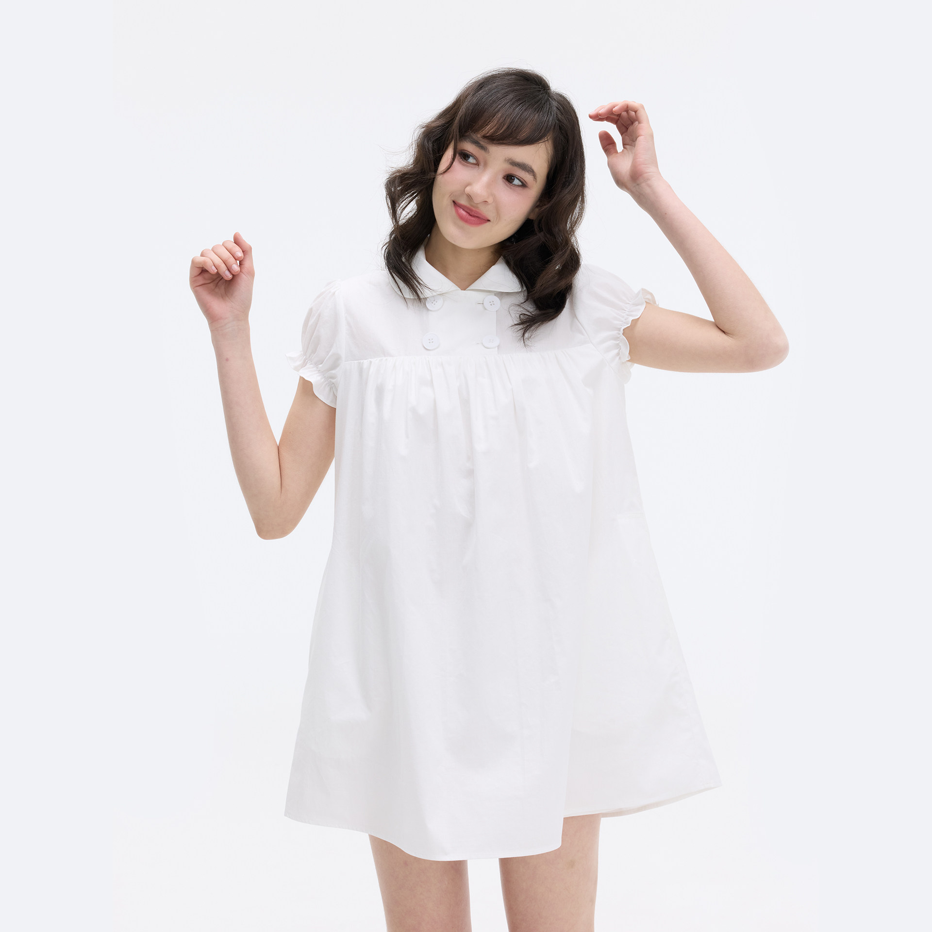 带底裤 迷你连衣裙 莱塞尔亚麻娃娃领泡泡袖 Veryrareme
