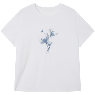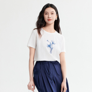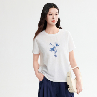 百搭通勤上衣女 简约白色短袖 FINITY菲妮迪印花T恤2026年夏季 新款