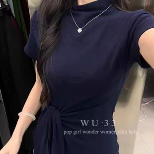 3226半高领系带显瘦短袖