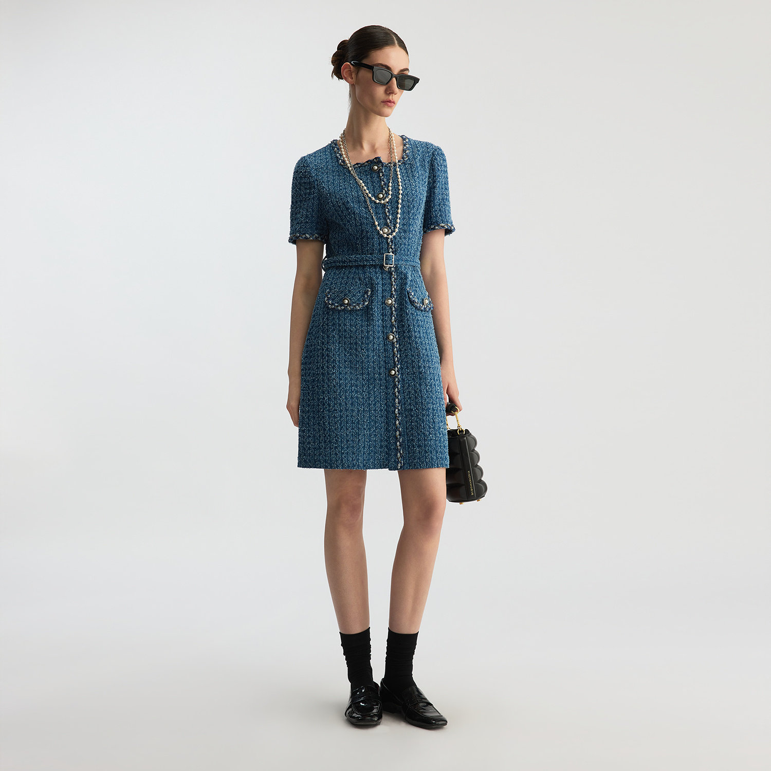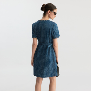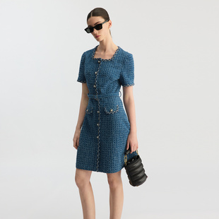 小香裙 连衣裙气质优雅织带饰边牛仔感粗花呢经典 BCBG2026春季 新款