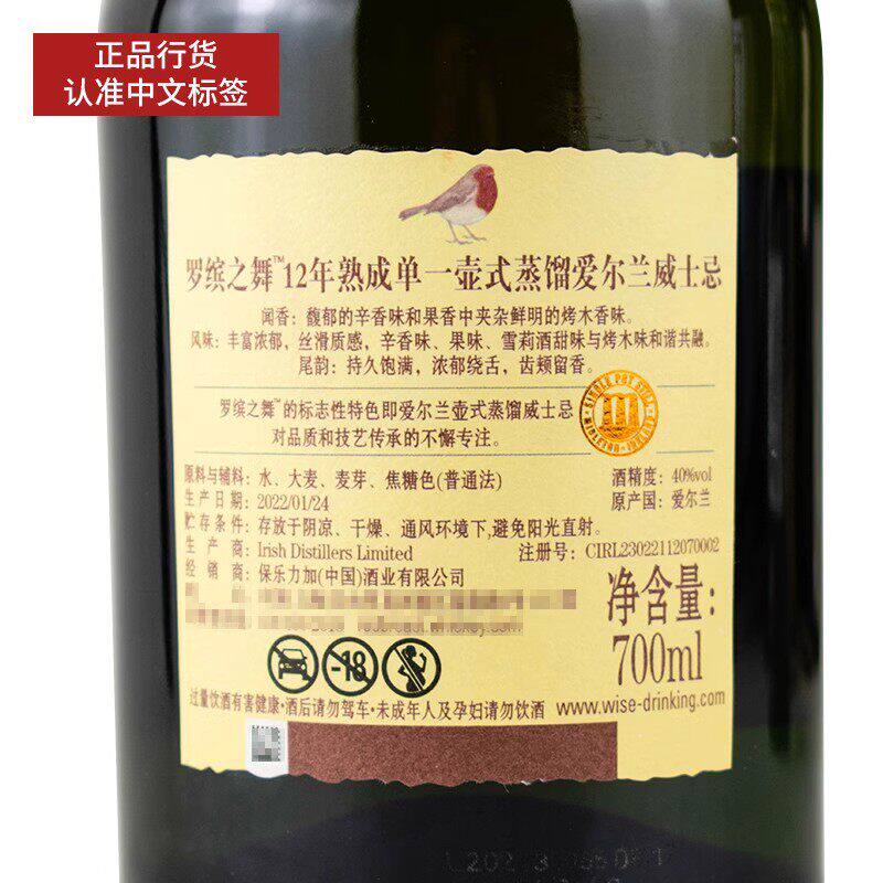 行货 REDBREAST罗缤之舞知更鸟12年单一蒸馏爱尔兰威士忌进口洋酒