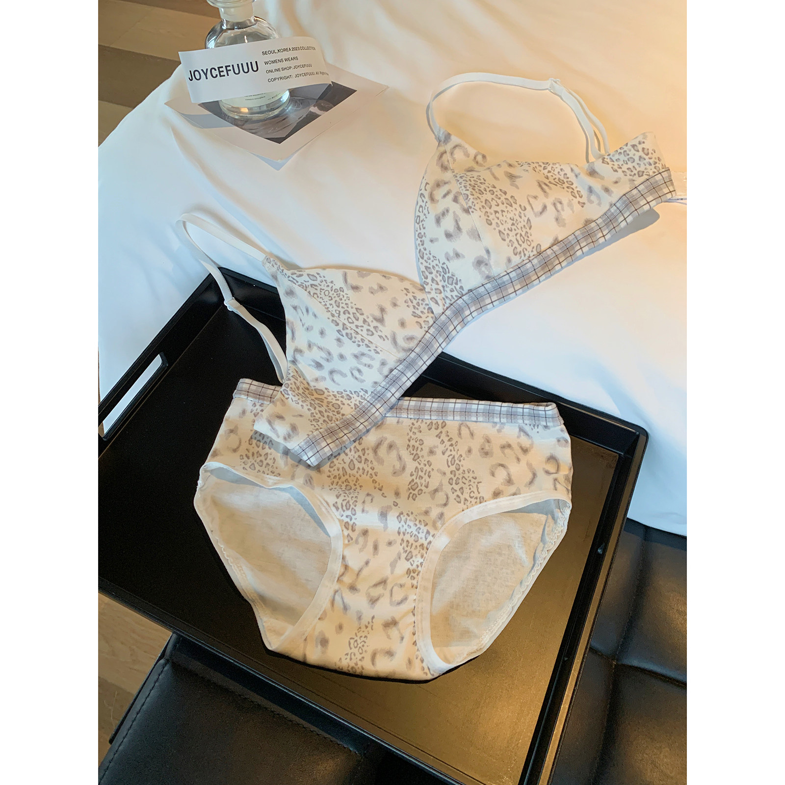 套装 JoyceBra纯欲风豹纹内衣女小胸聚拢舒适薄款 透气无痕文胸内裤