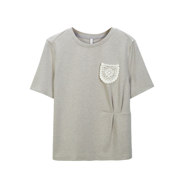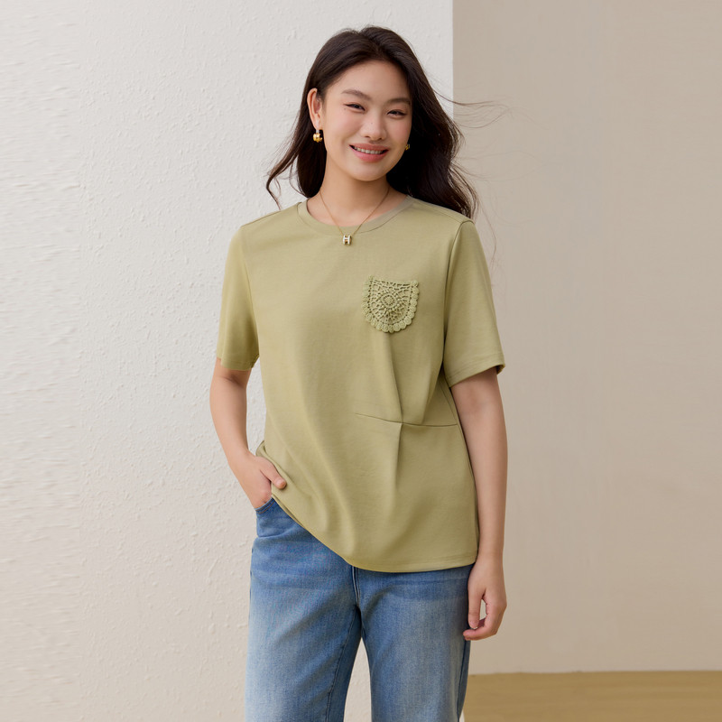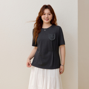贴花设计T恤 显瘦圆领上衣胖mm2026夏装 纤莉秀大码 时尚 款 女装
