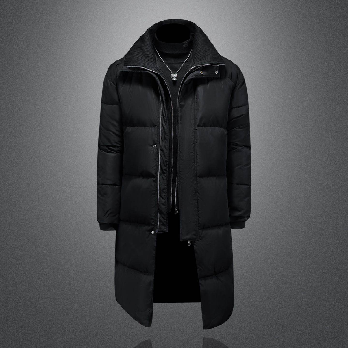 中长款 针织假两件立领棉衣男士 设计感御寒保暖加厚棉服潮 新款 冬季