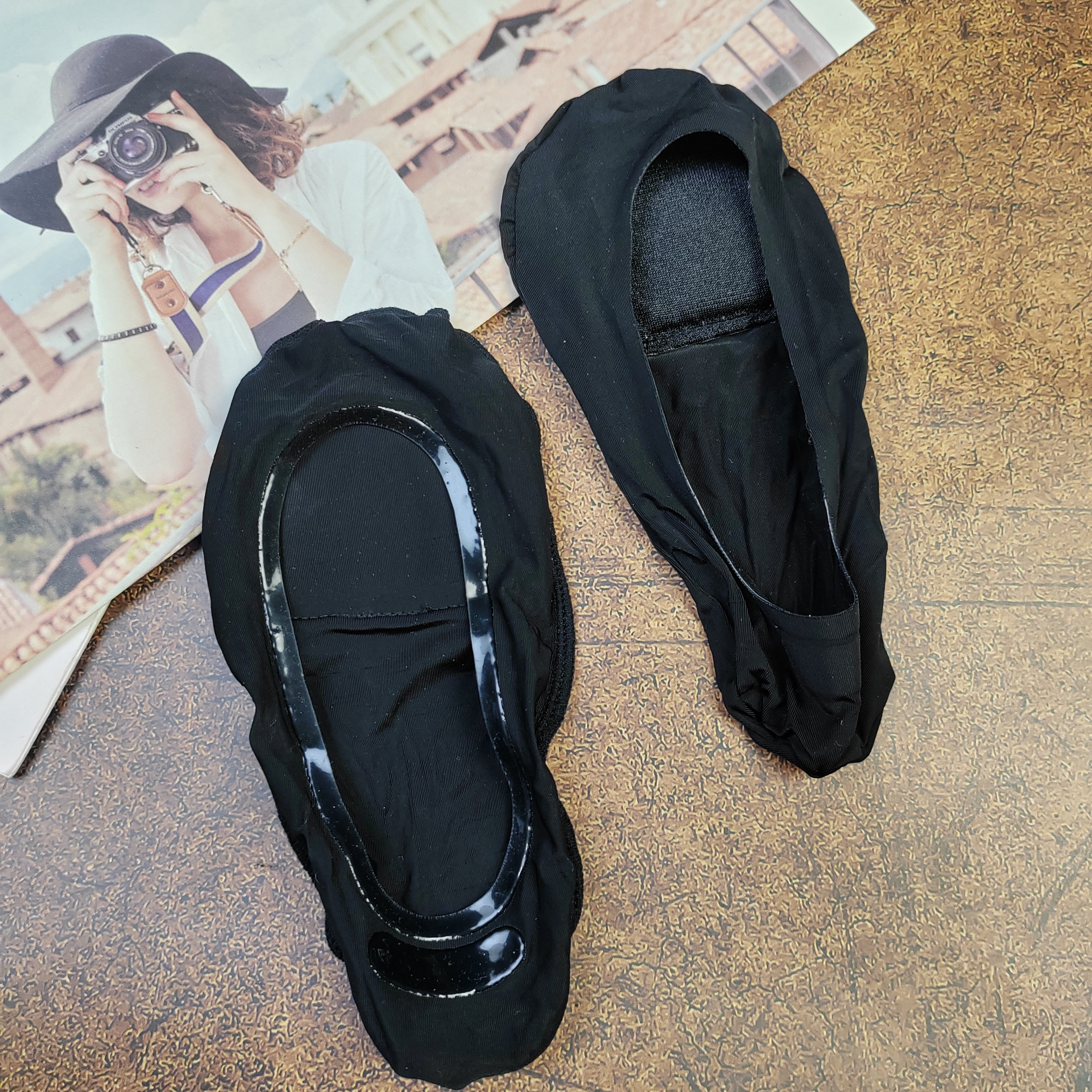 冰丝隐形袜带气垫短袜女夏季 隐形船袜黑色浅口防滑不掉跟袜子女