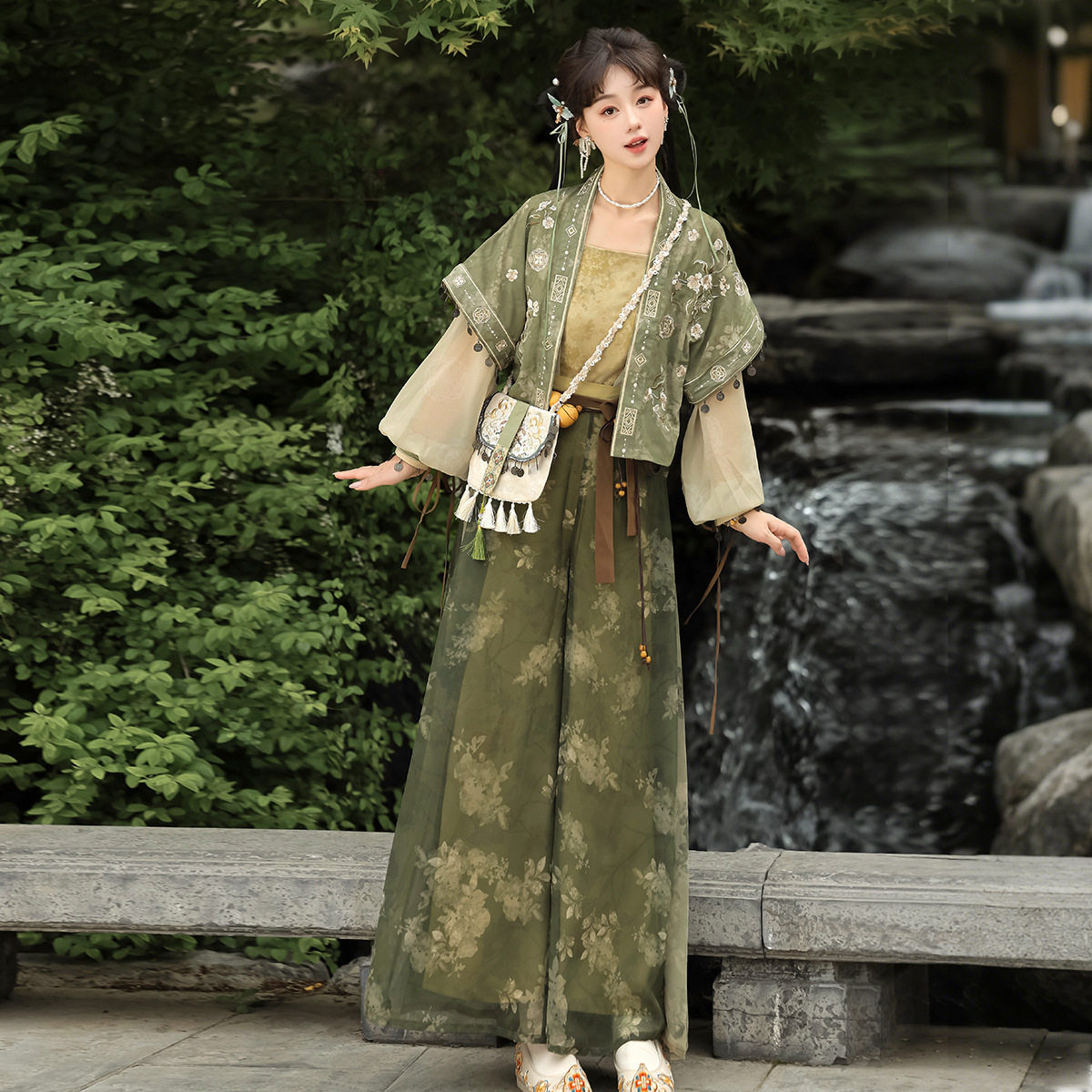 9553 子套装 倚梦阁原创采桑归汉服女国风新中式 短褙子吊带里衣裤