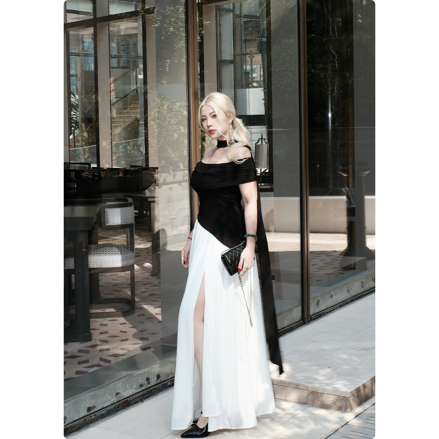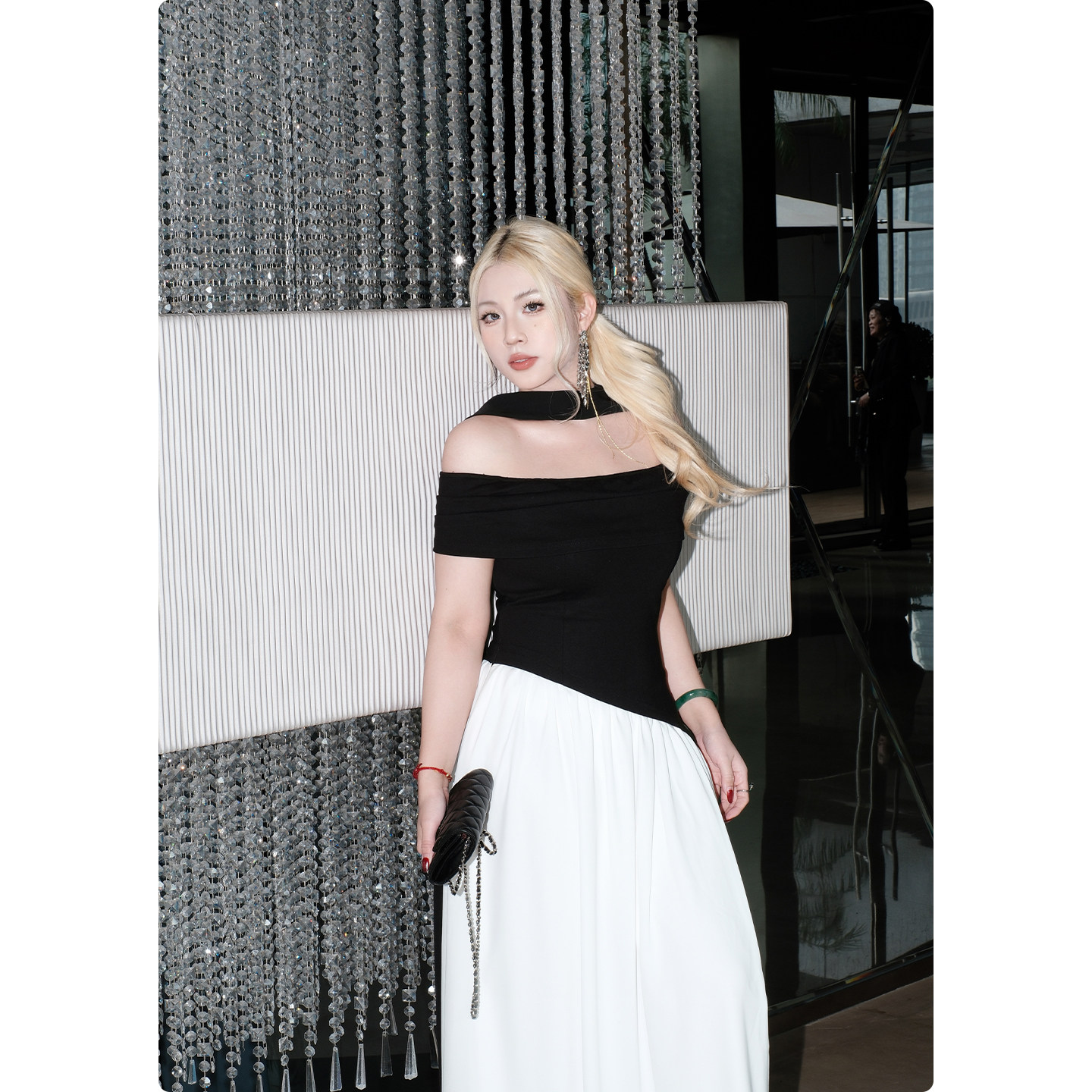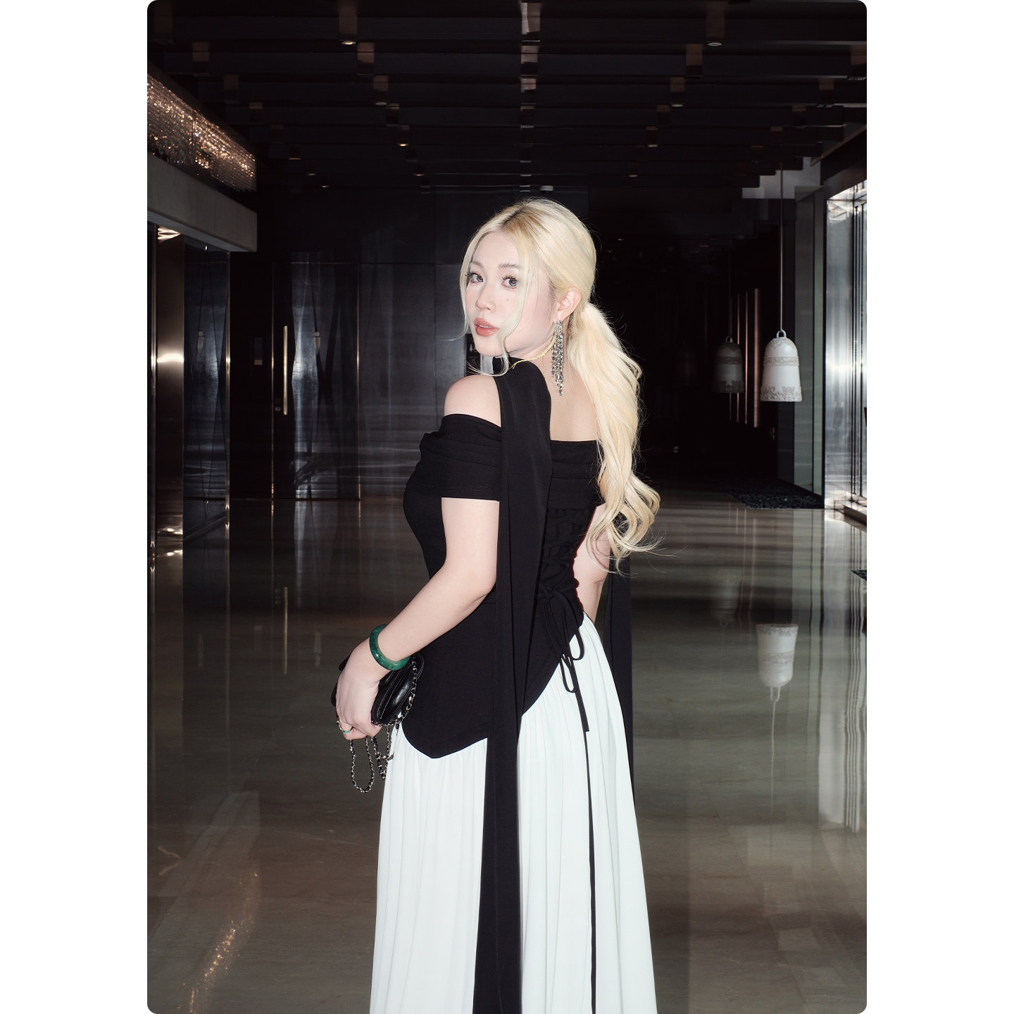 糯米子 天使一字领褶皱不规则抹胸裙名媛轻奢礼服裙 穹光之礼