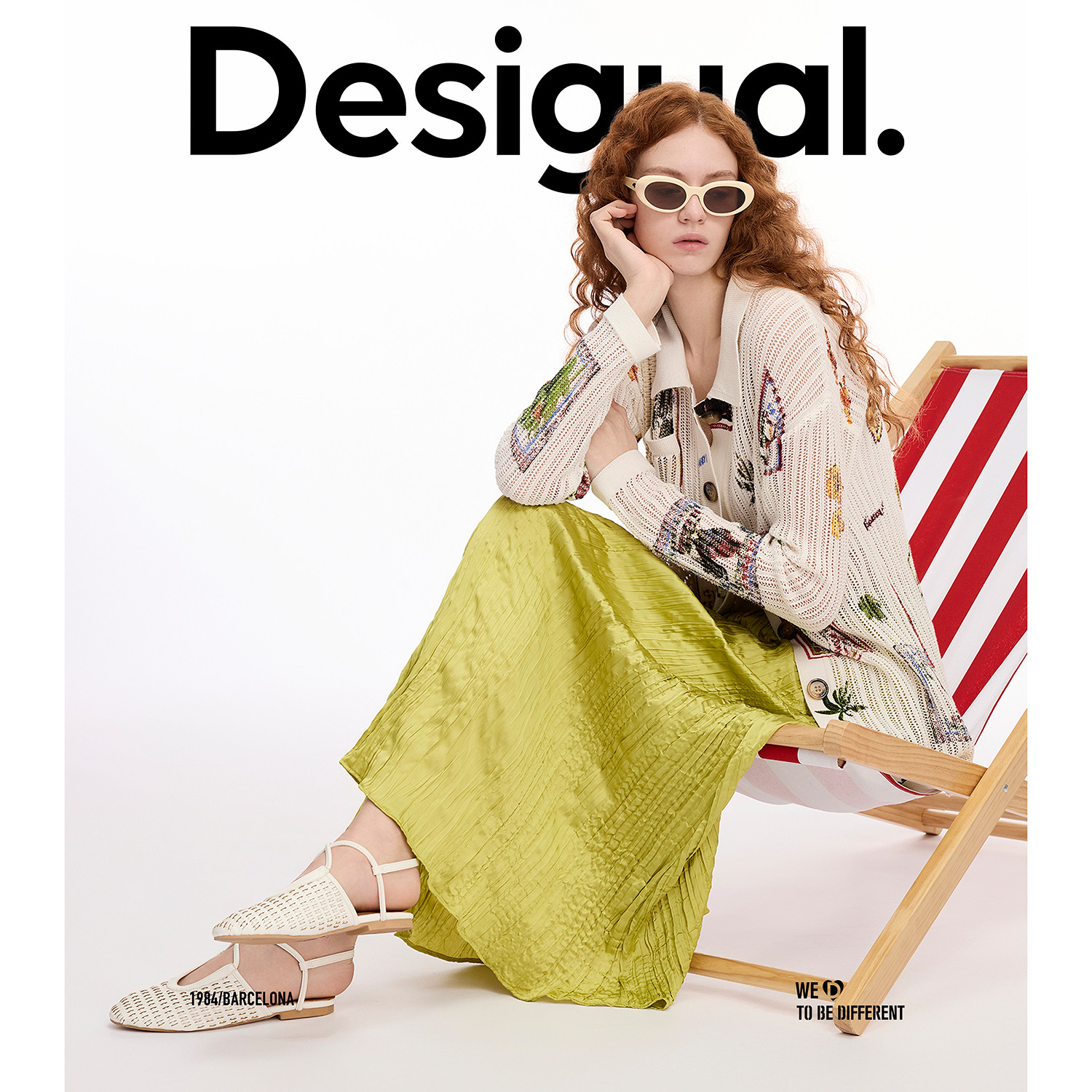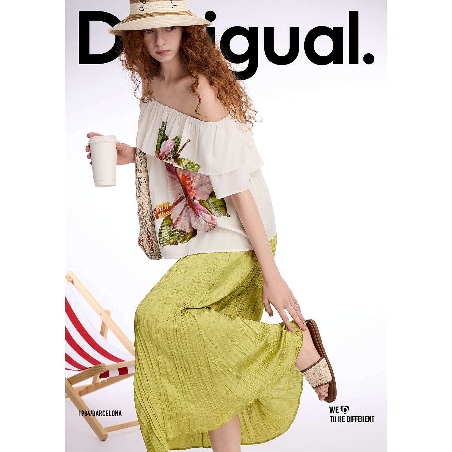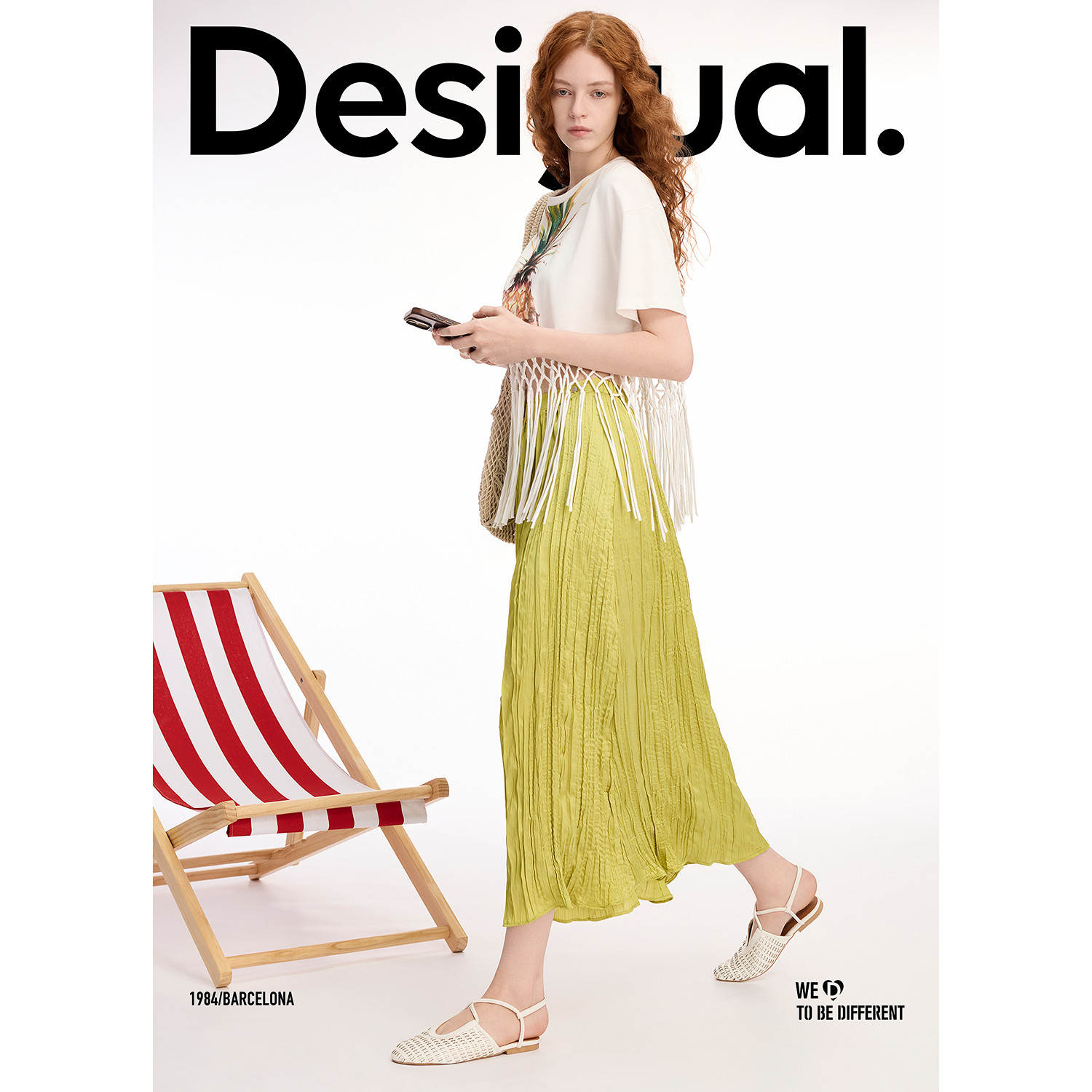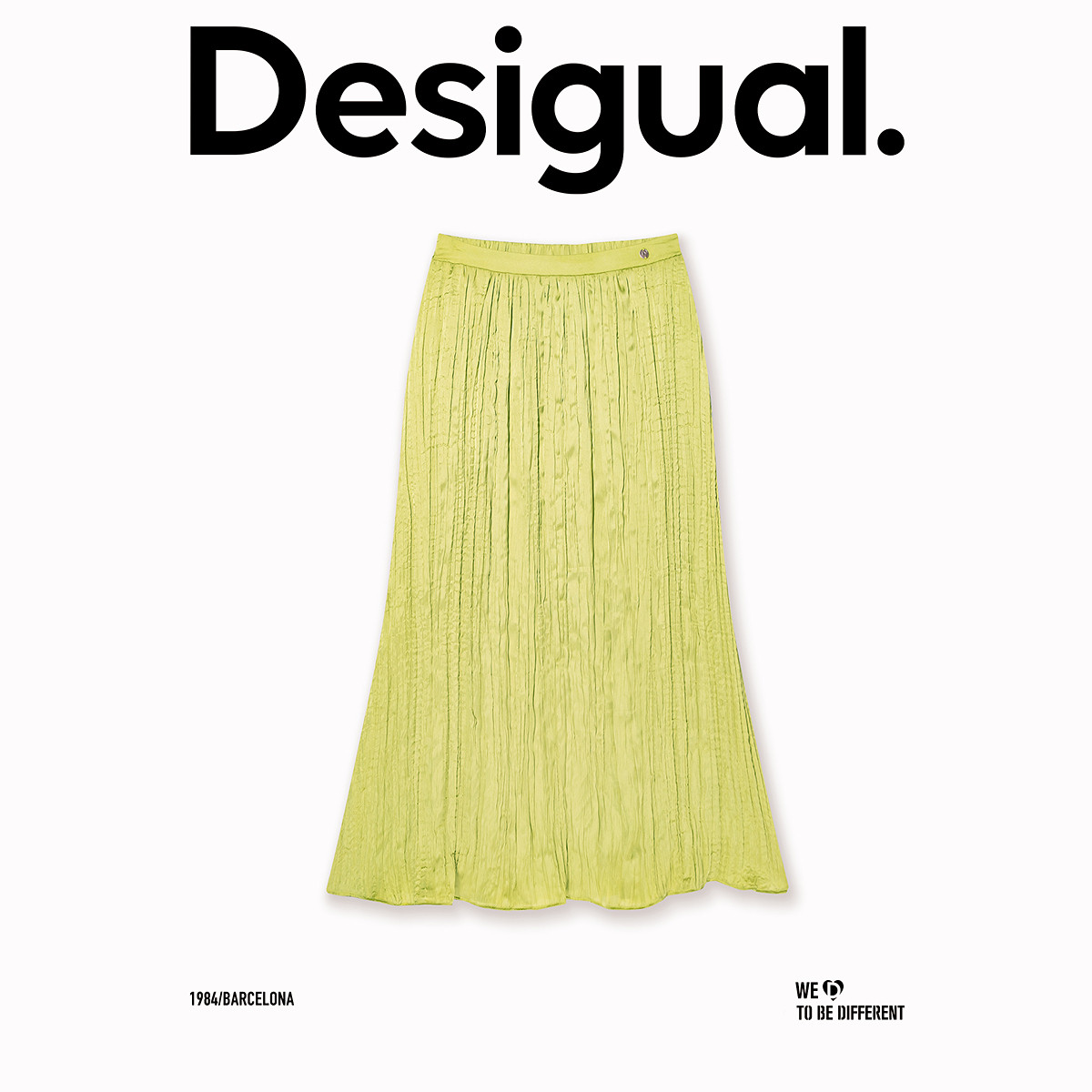 Desigual26春夏新品 半身裙 光泽感压褶宽松伞摆长款