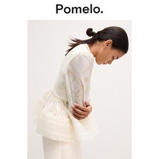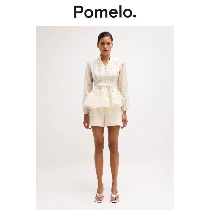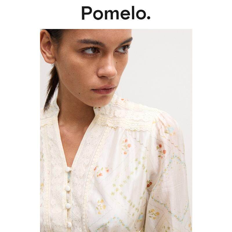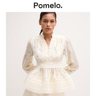 荷叶边衬衫 蕾丝腰褶长袖 气质通勤收腰印花款 Pomelo