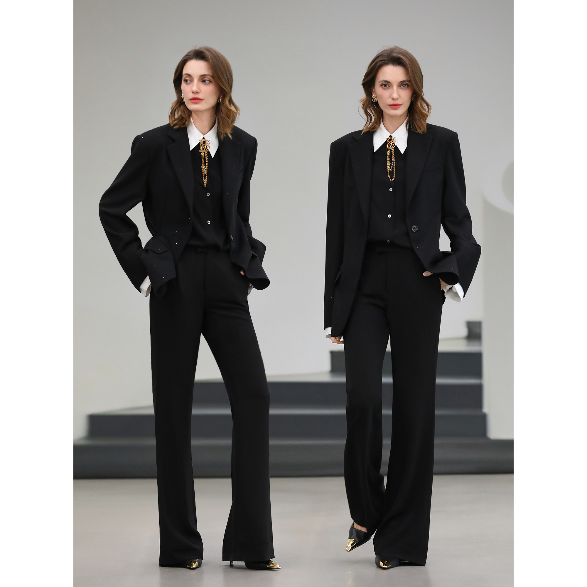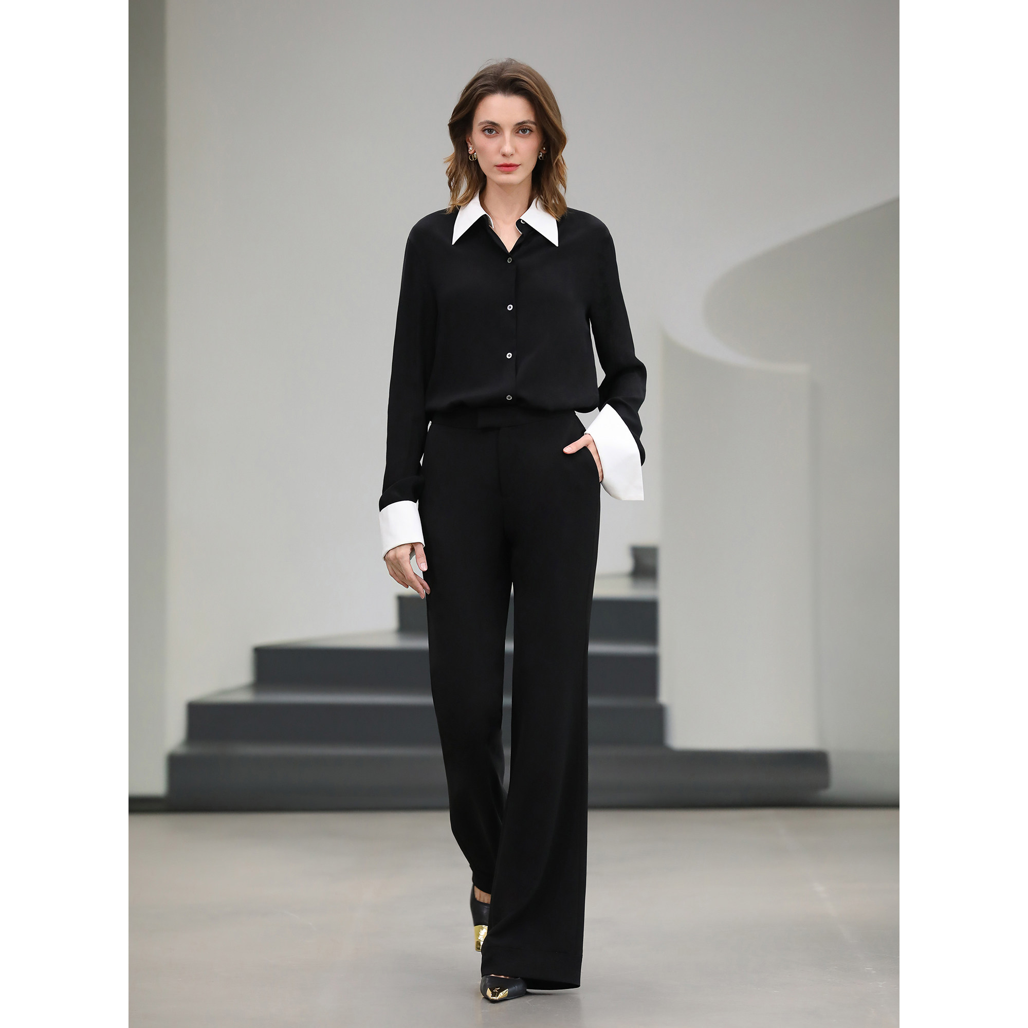 PA41 预售COCOBELLA静奢风通勤微喇西裤 女垂坠感黑色高腰休闲裤