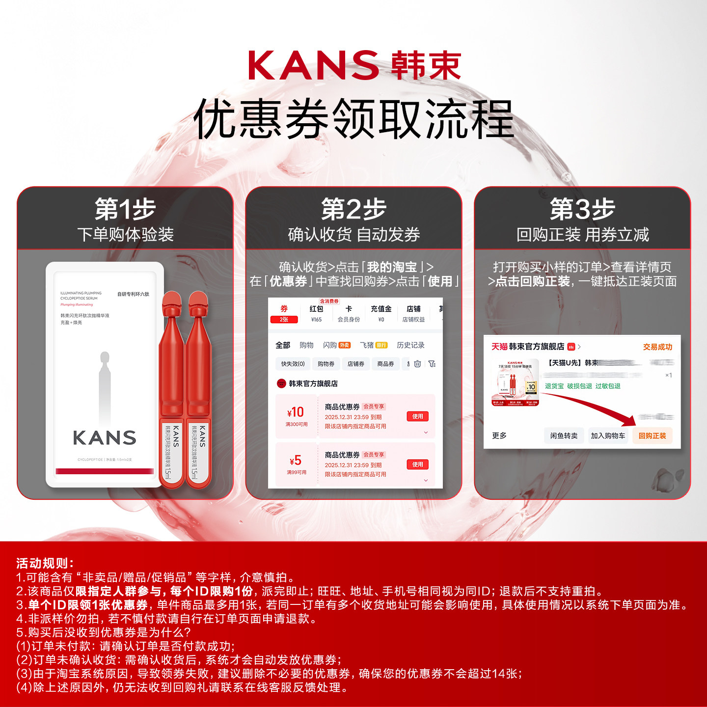 2支 韩束闪充环肽次抛精华液1.5ML 天猫U先秒杀