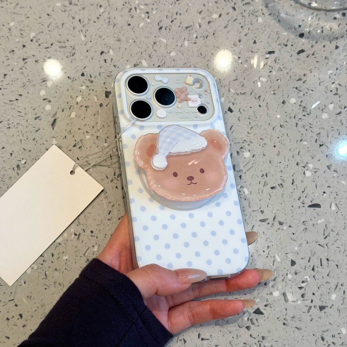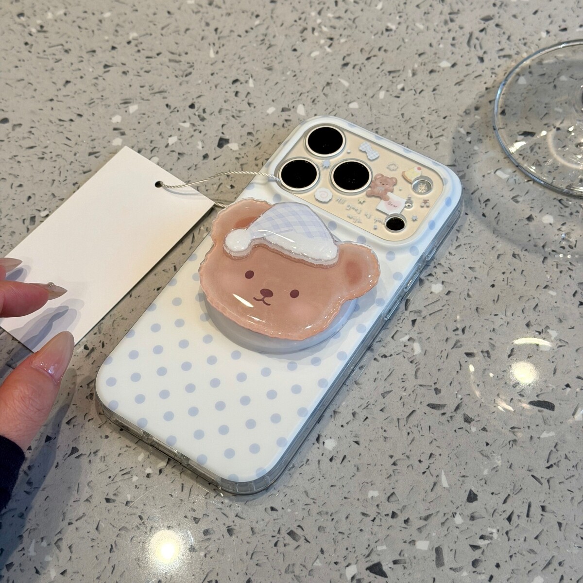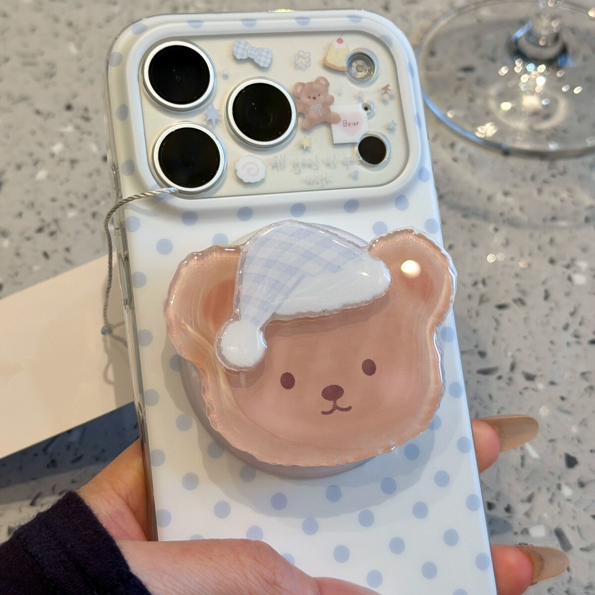 V60 X80软萌X70 X200S Y36可爱S19 Y37C Y78 S50promini X90S手机壳V27e S30 X300 睡帽小熊磁吸支架适用vivo