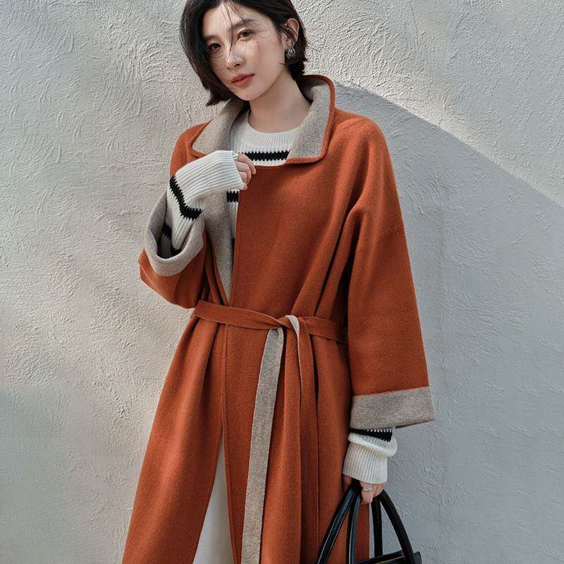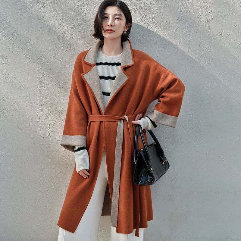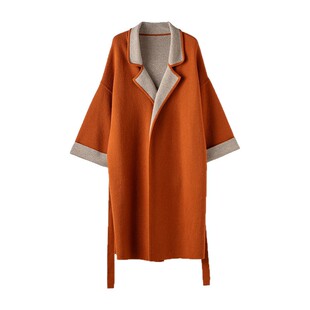 外套 秋冬新款 100%纯山羊绒女士翻领大衣时尚 气质简约休闲风针织衫