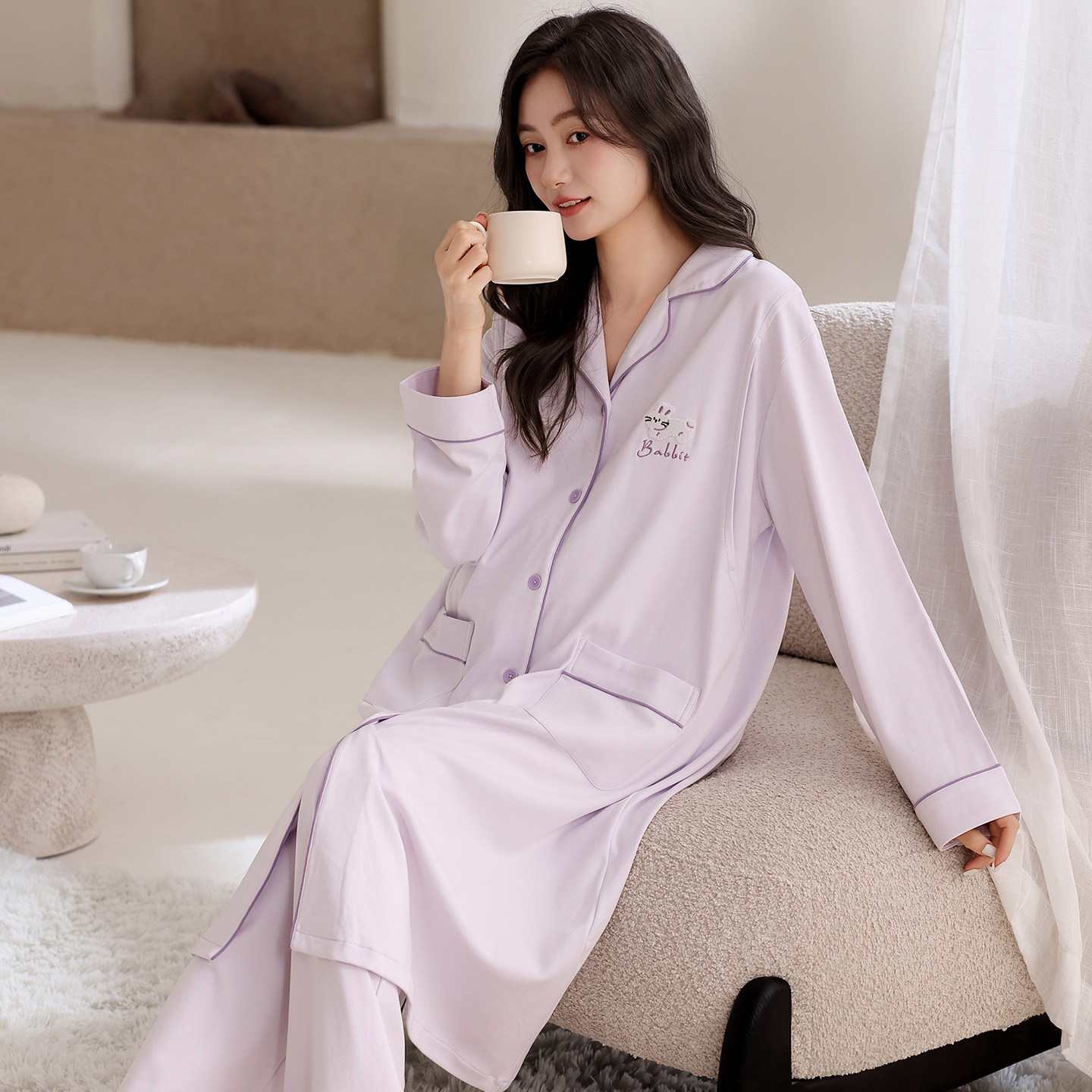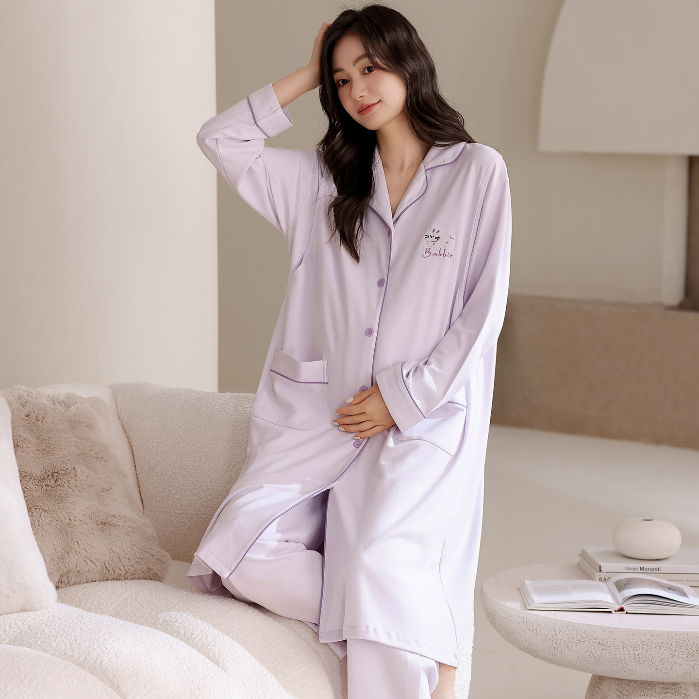 睡裙待产后孕妇哺乳套装 长袖 2026新款 都市丽人纯棉月子服睡衣女款