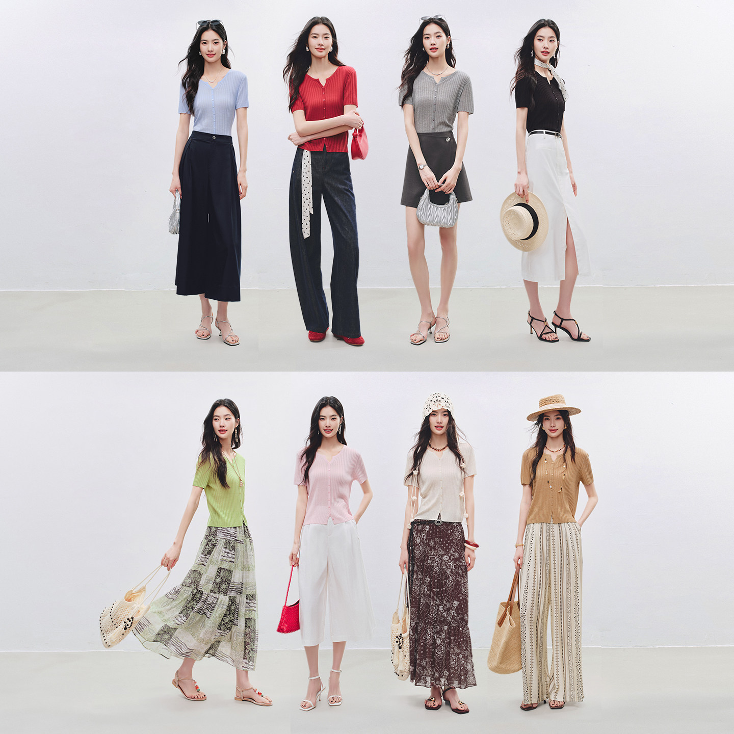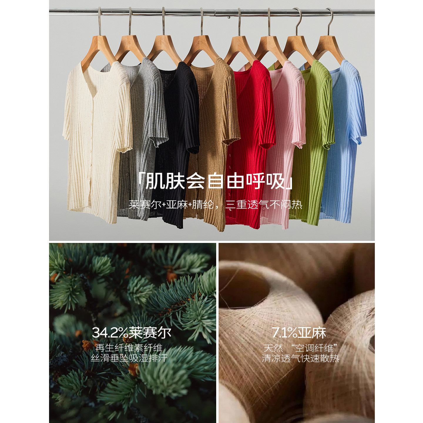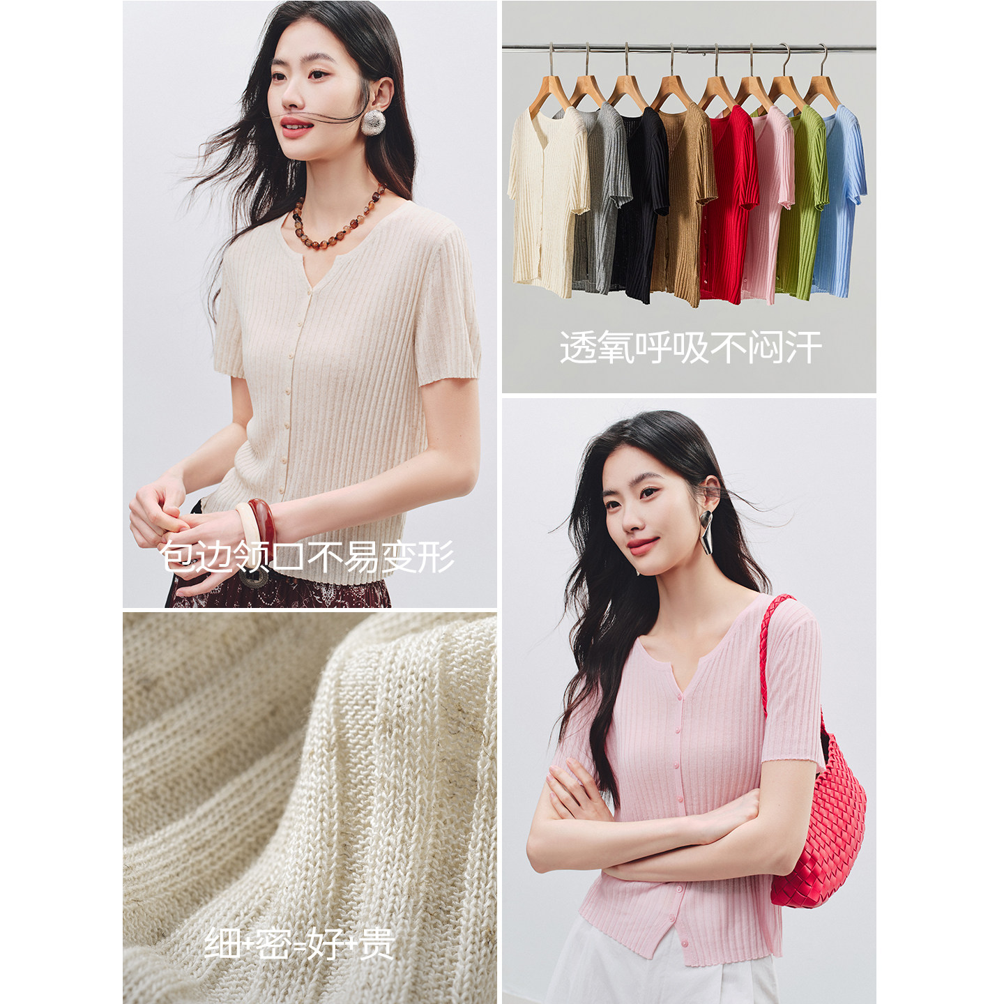 衣香丽影针织短袖 2.0 女亚麻2026夏装 新V领修身 上衣 中袖 云麻衫