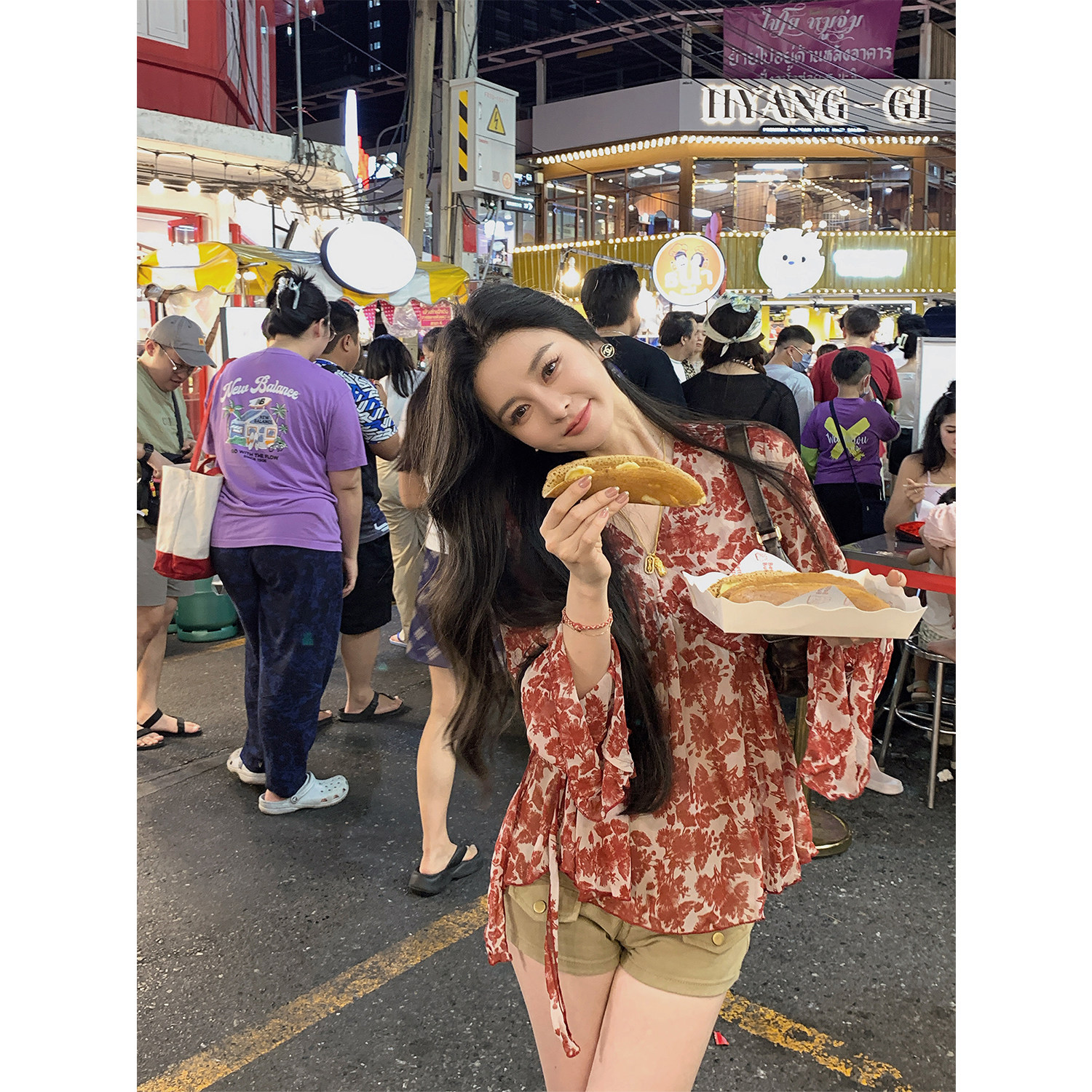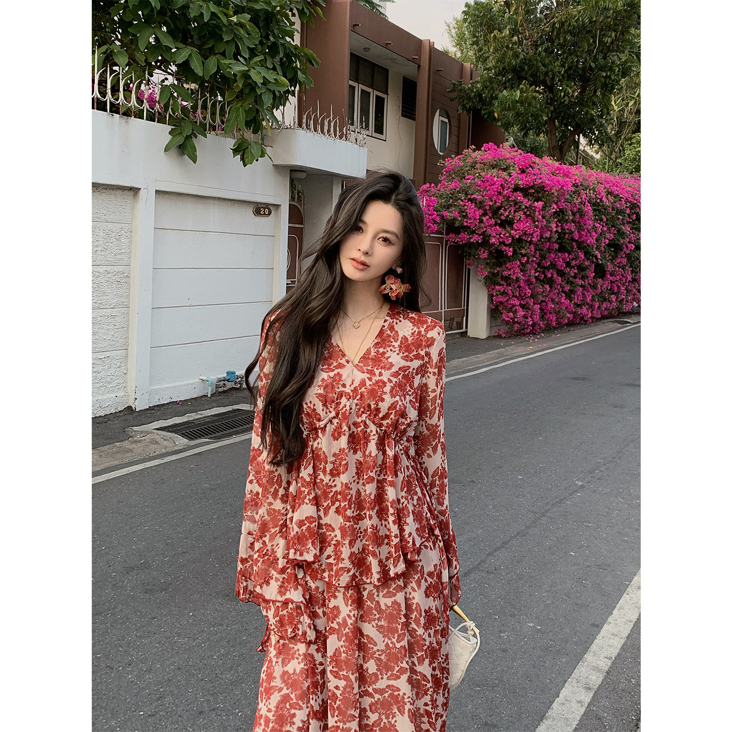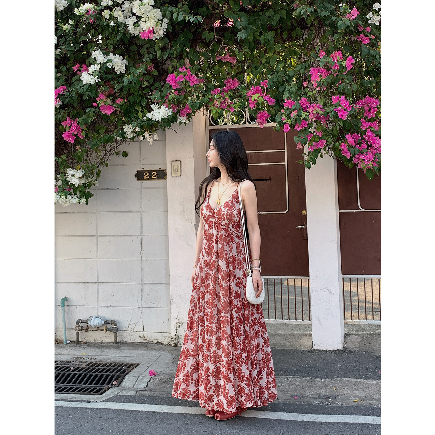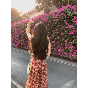碎花挂脖雪纺度假吊带裙上衣 「赤茶玫瑰」法式 MINI STUDIO徐琳