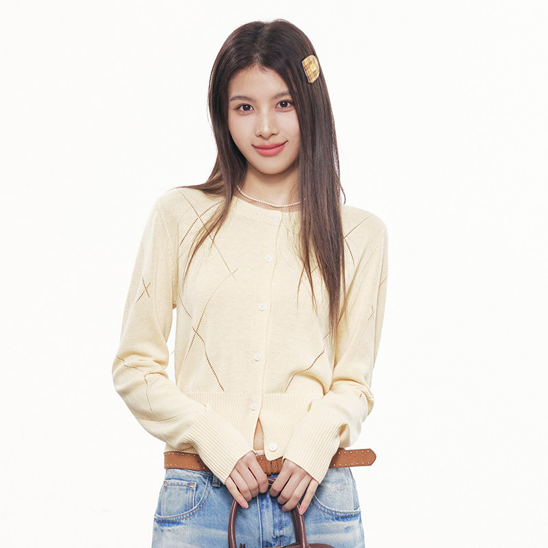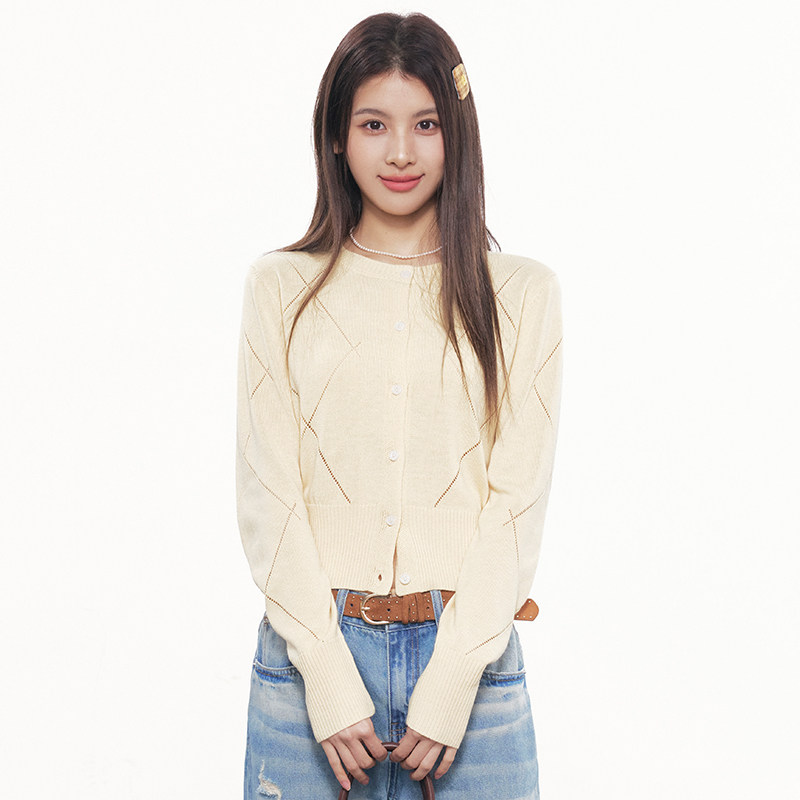 女收腰短款 RPB 针织开衫 初春淡色轻薄韩系长袖 显瘦毛衣外套 BRAND