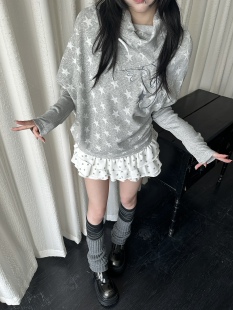 咖喱人早春复古韩系卫衣轻亚星星翅膀蝙蝠袖 上衣萌系y2k打底T恤