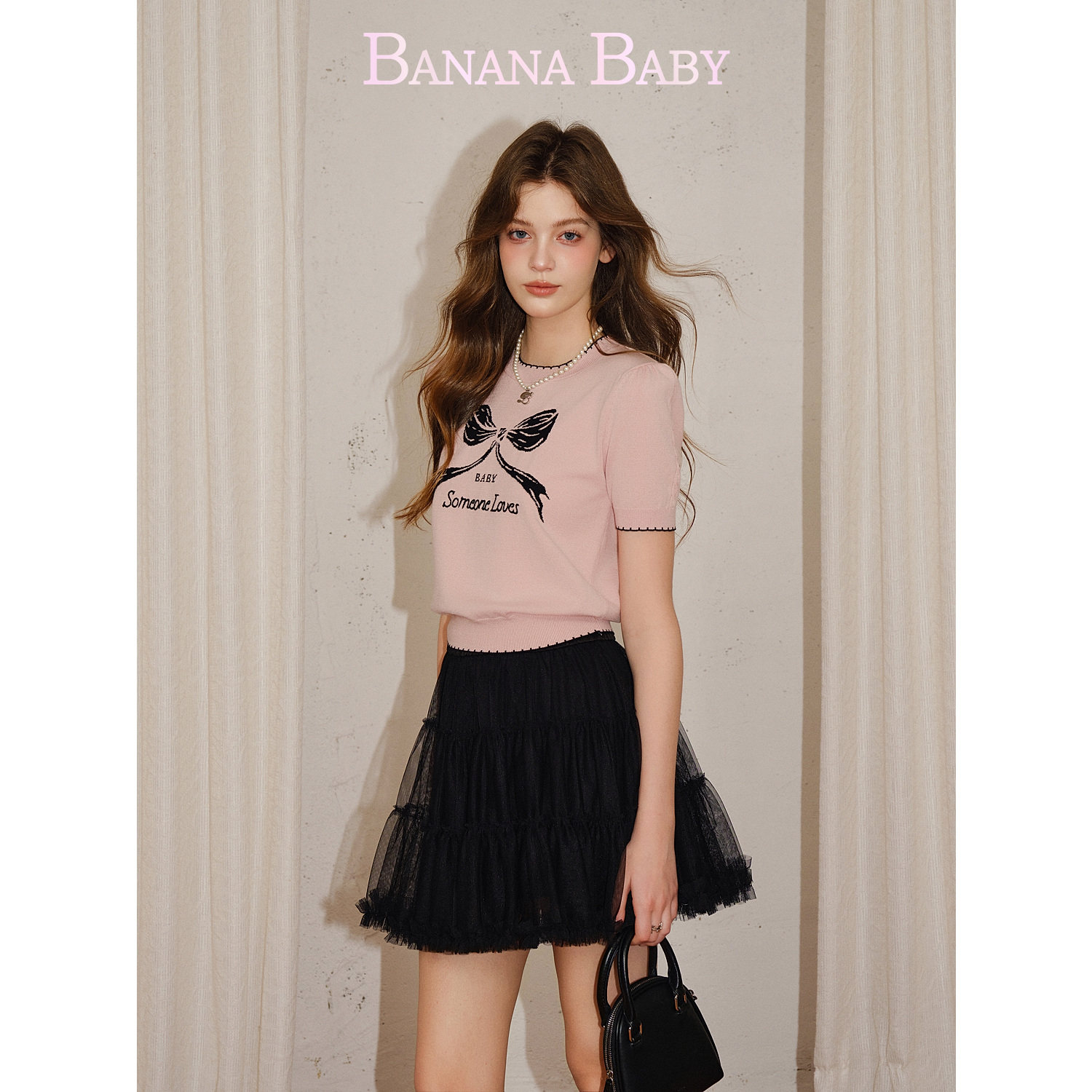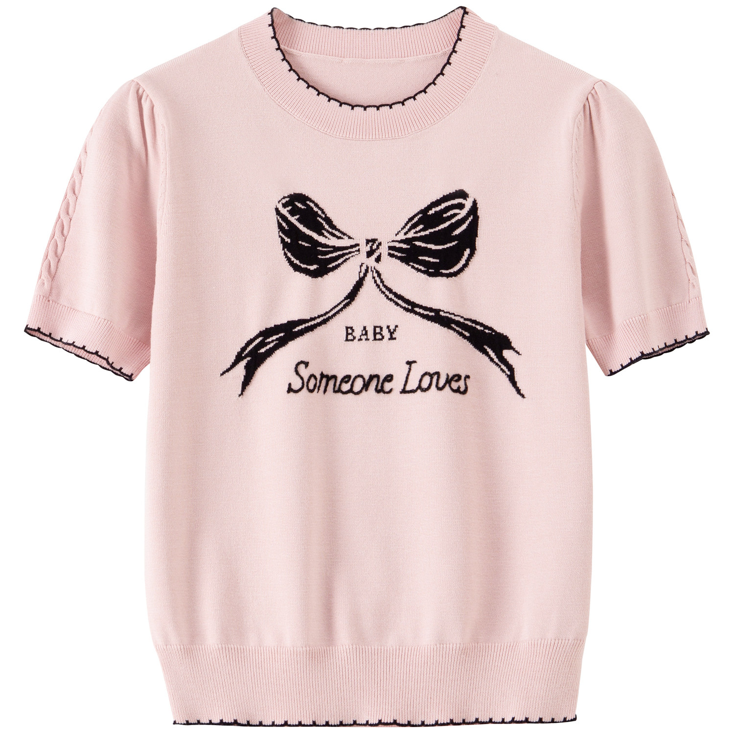 针织衫 BANANA 甜美原创蝴蝶结提花撞色泡泡袖 新款 BABY2026年夏季