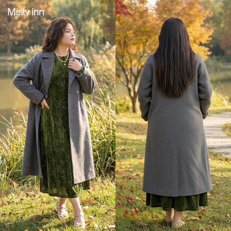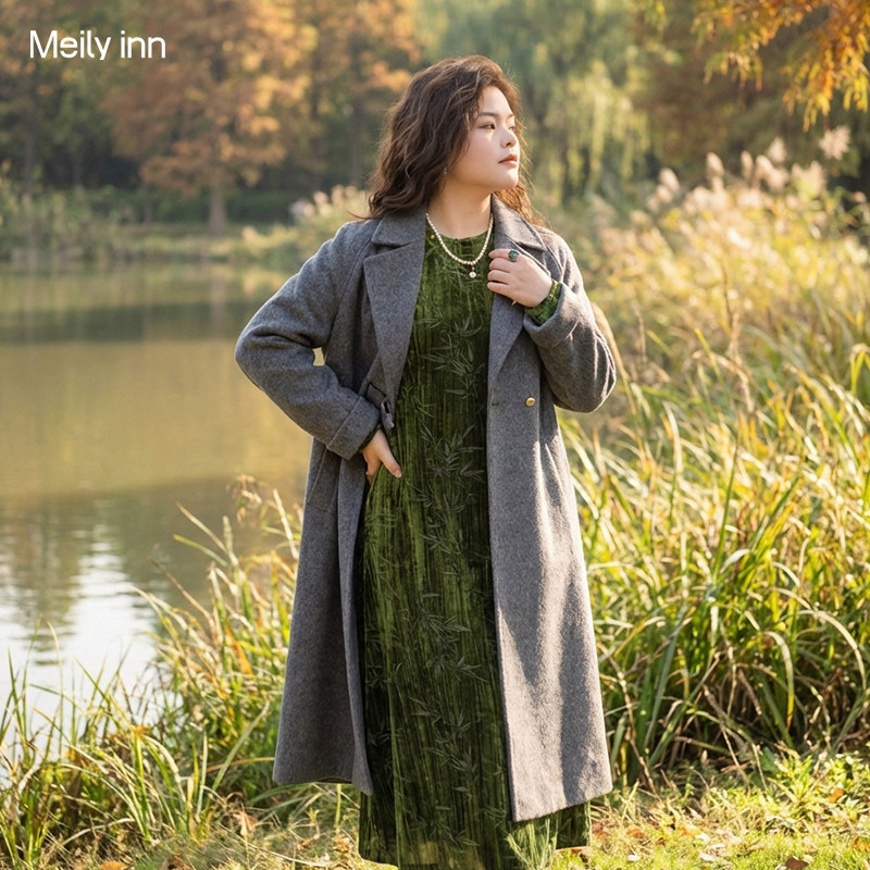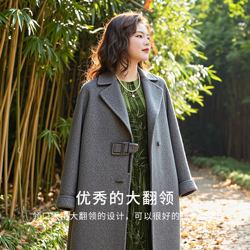西装 美丽客栈高端大码 型长袖 高级感修身 领绵羊毛双面呢外套女 女装