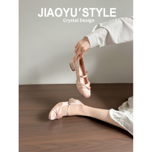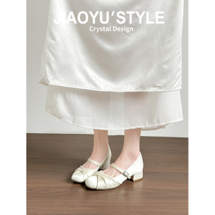 配裙子单鞋 真皮 裸色高跟鞋 女2026春新款 骄屿小香风芭蕾玛丽珍鞋