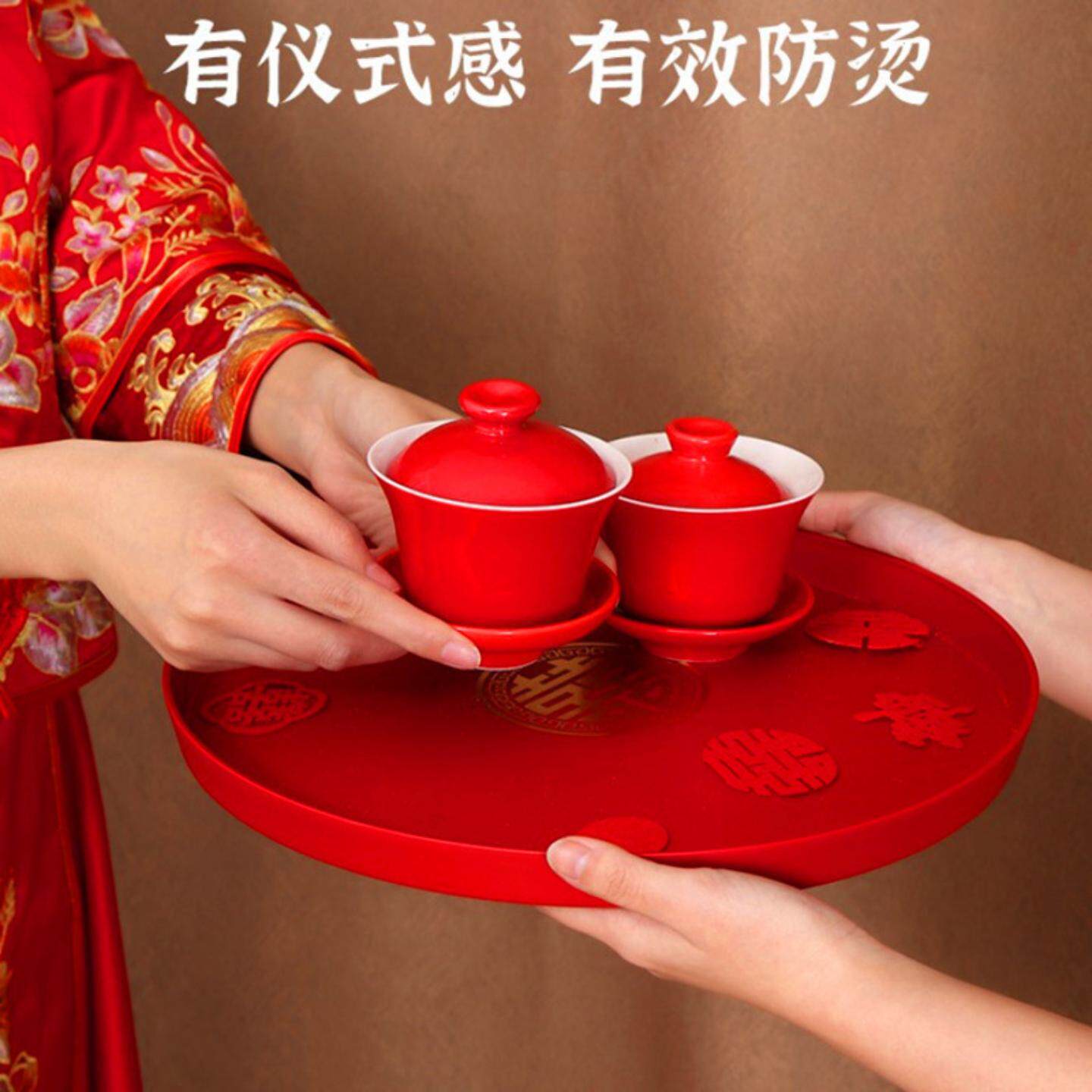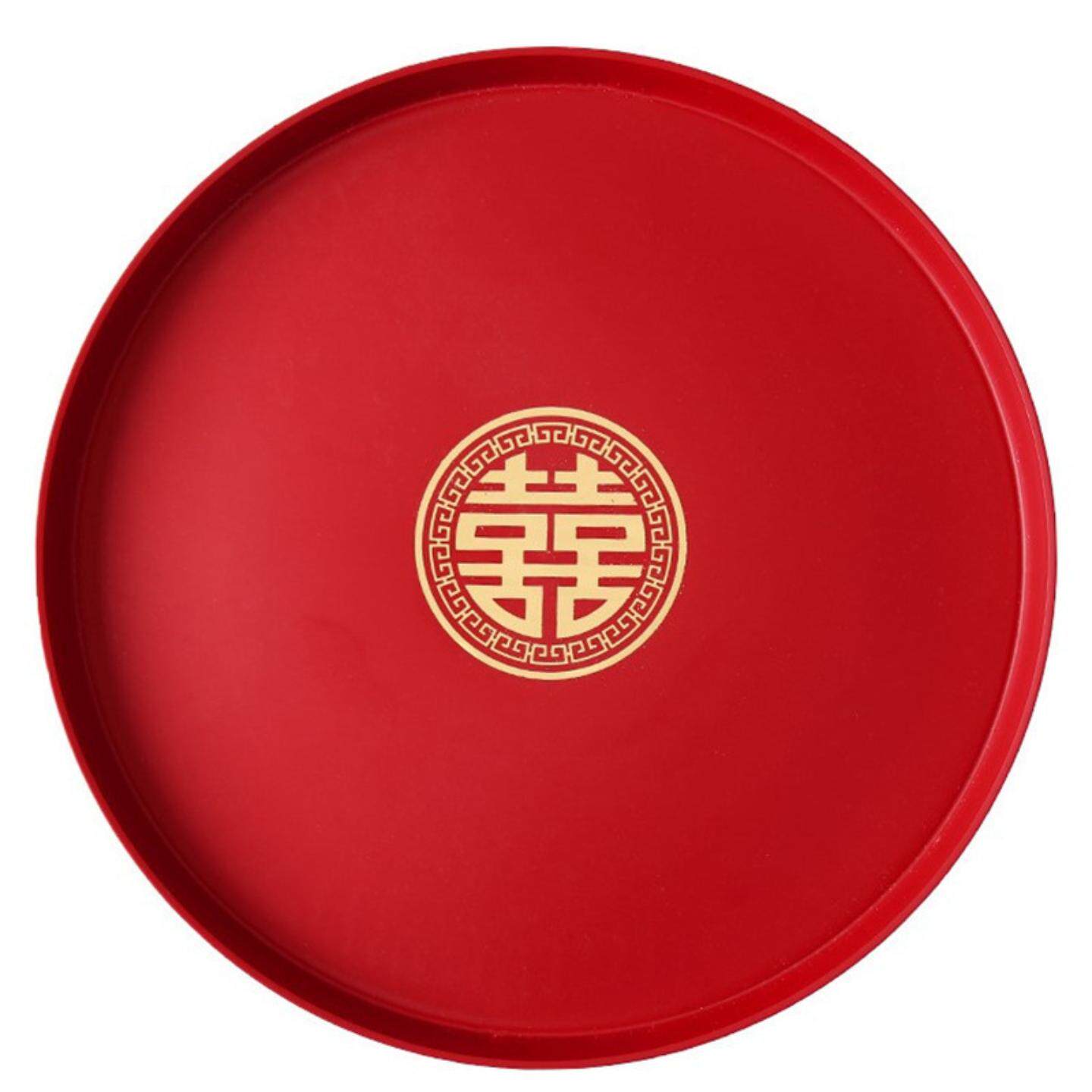 喜字福字塑料托盘结婚敬茶专用加厚红色喜庆喜糖盘长方形圆形茶盘