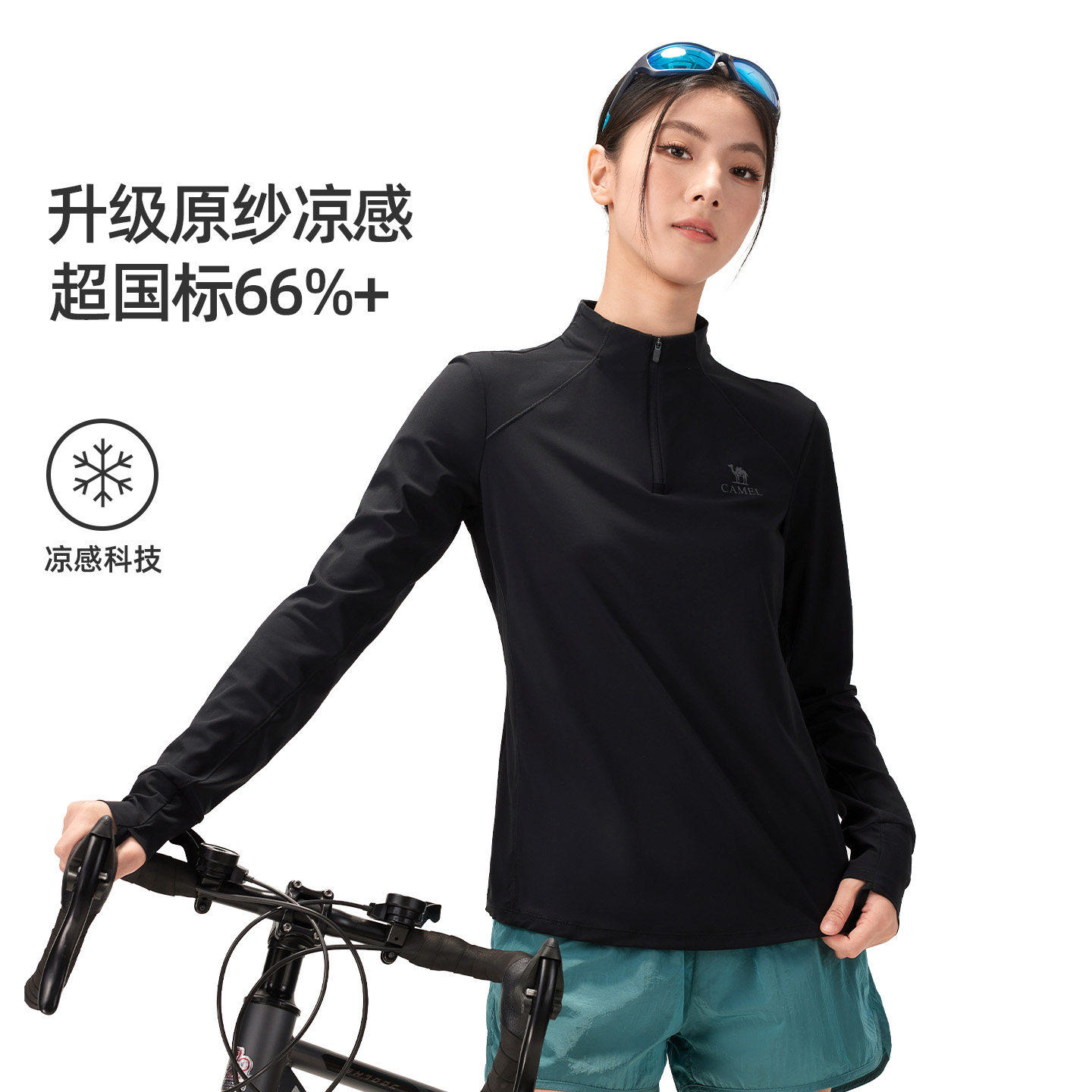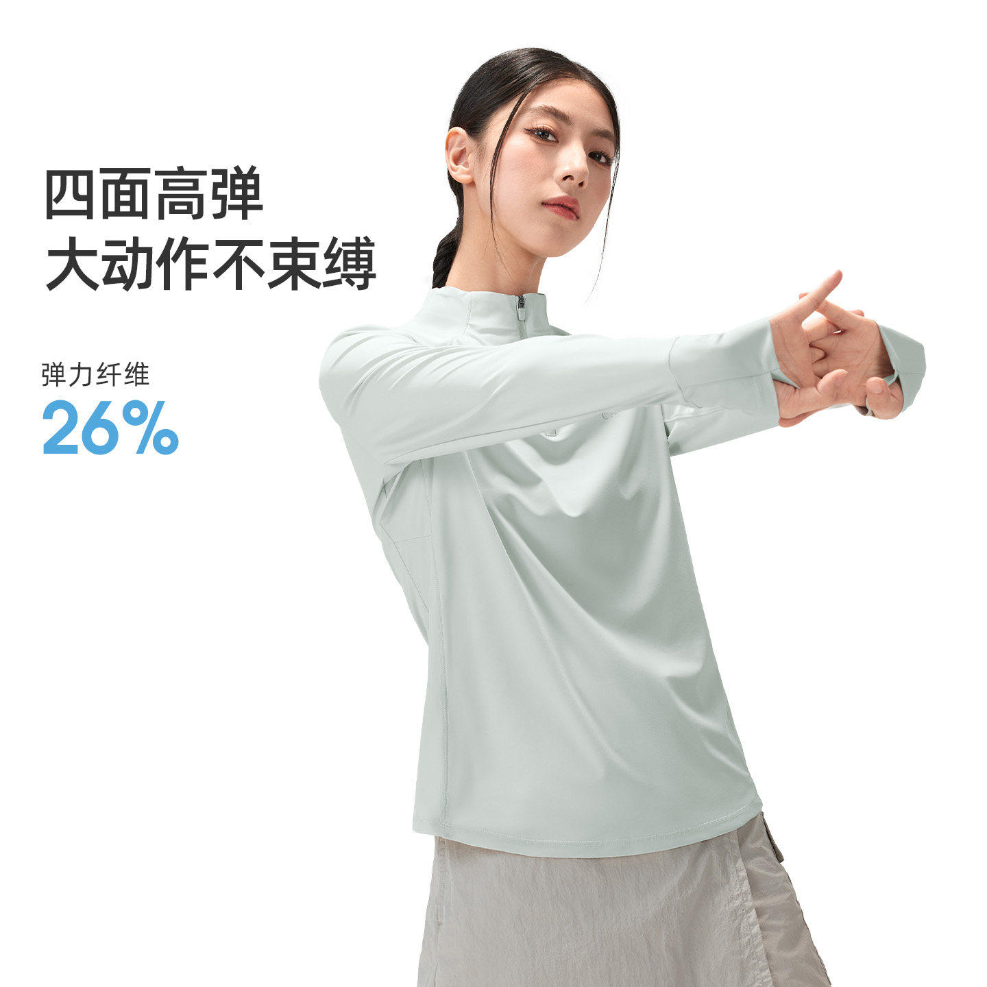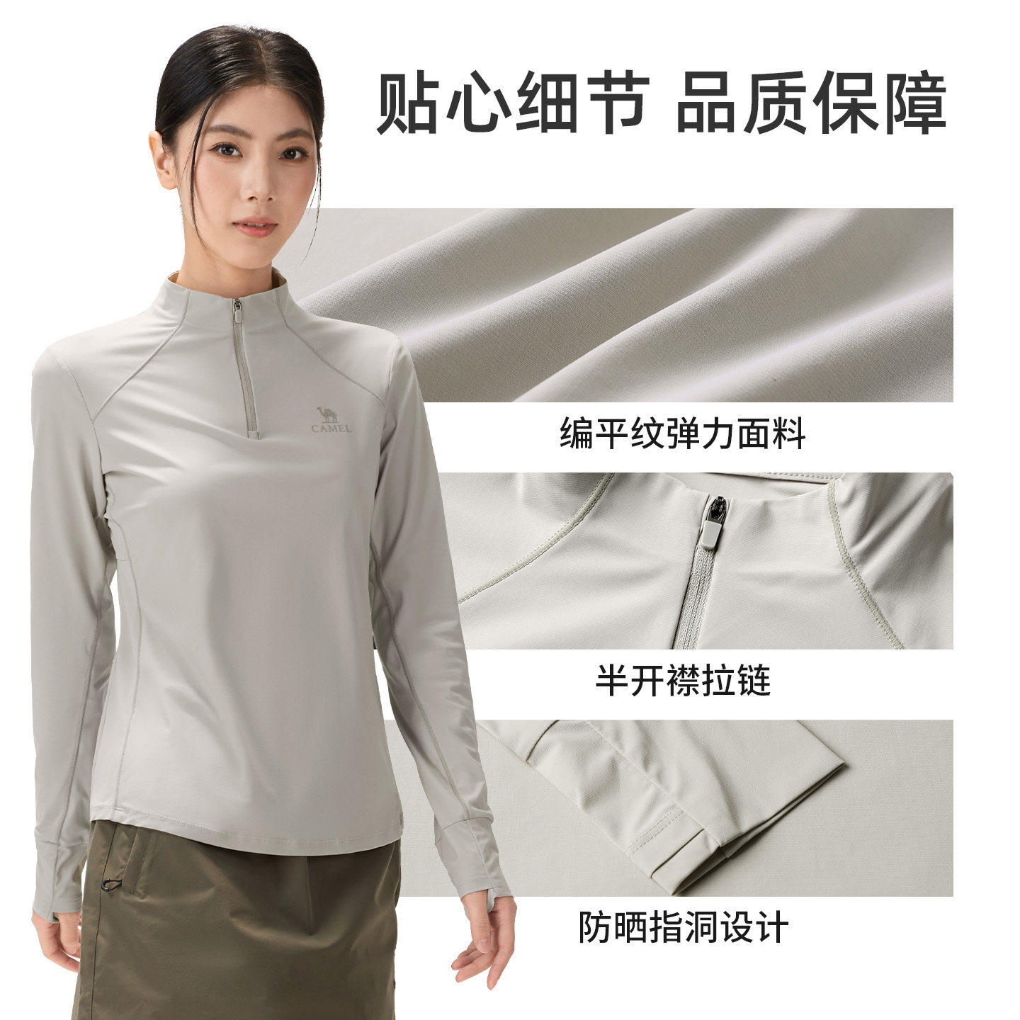 立领弹力凉感透气排汗防晒上衣 速干T恤女26春户外长袖 骆驼薄荷T