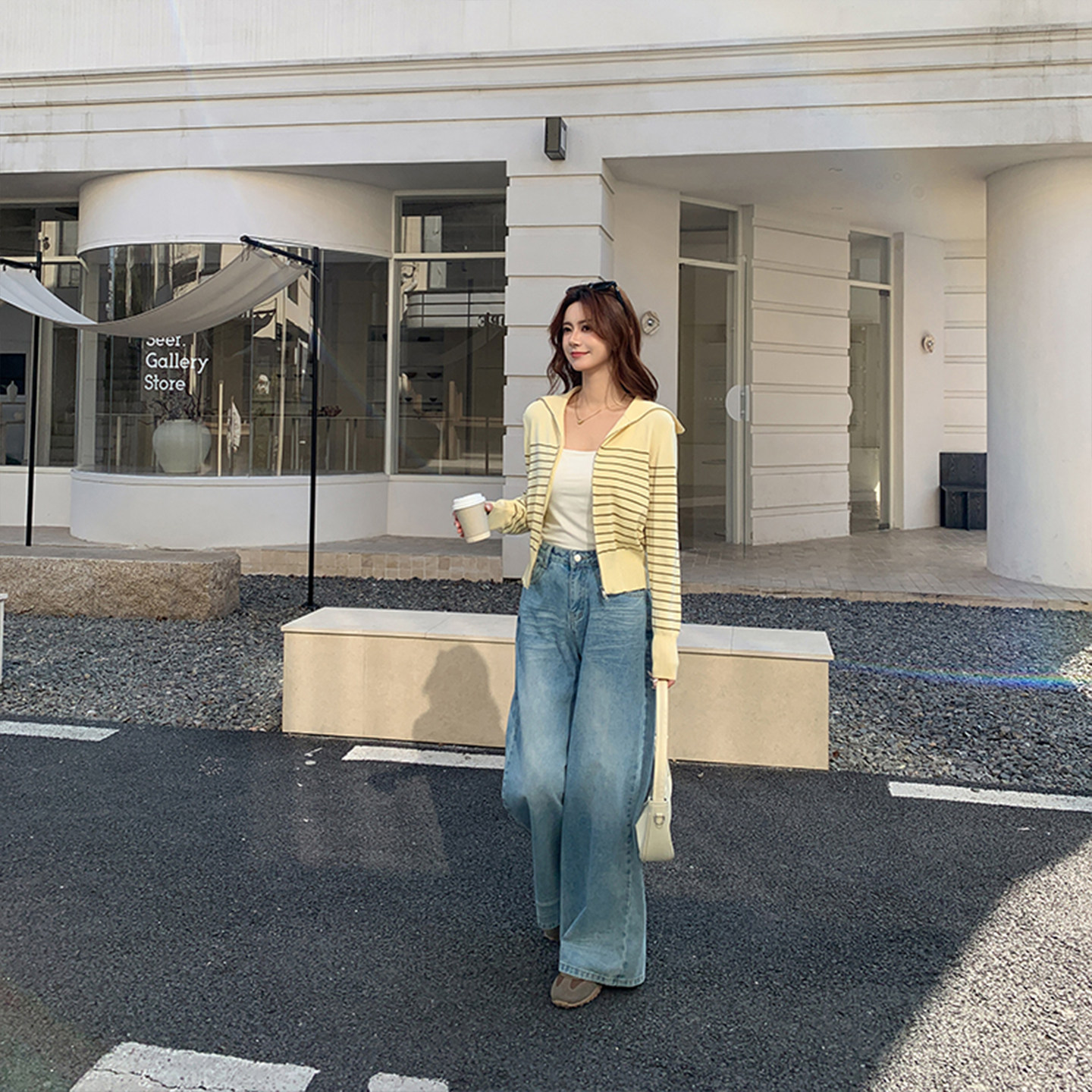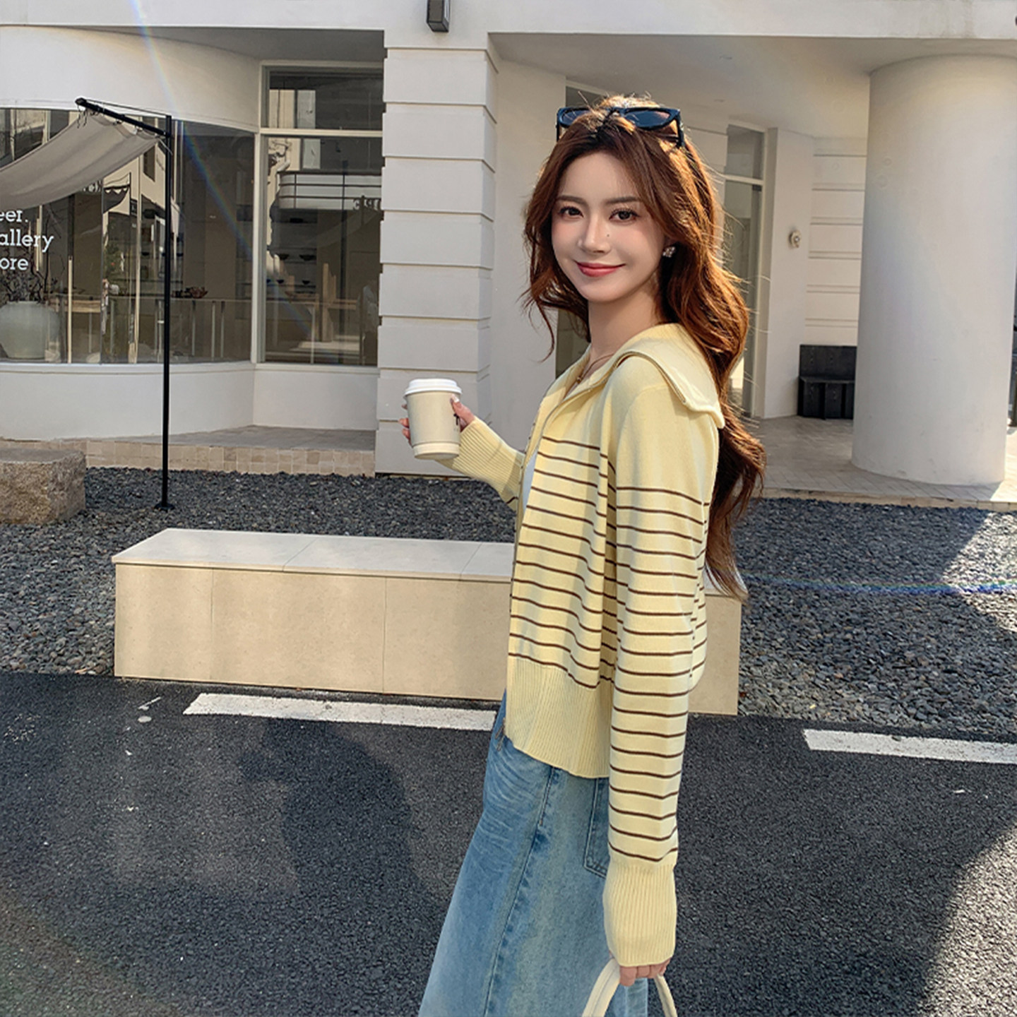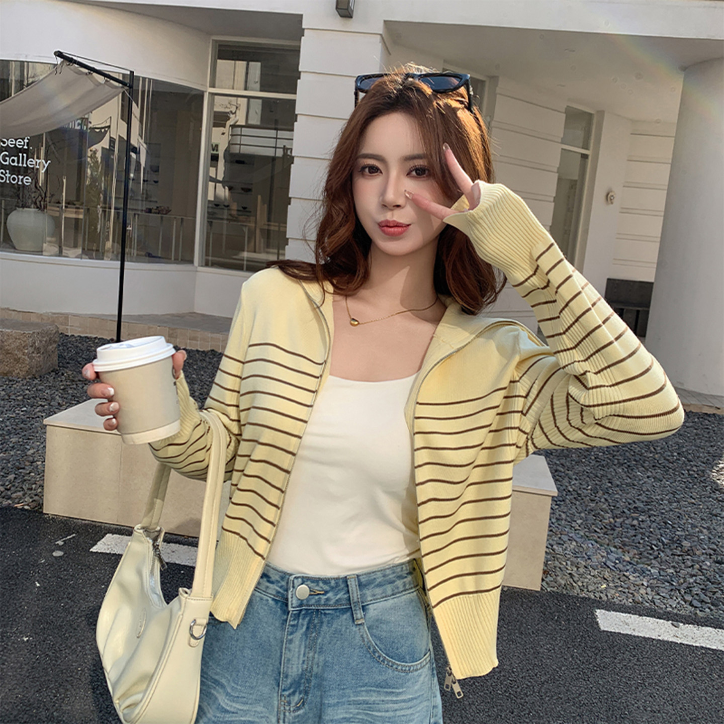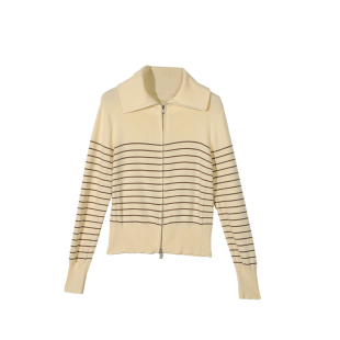 外套女黄色短款 天丝莱赛尔2026春季 开衫 条纹针织衫 双拉链上衣 新款