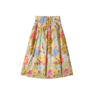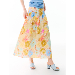 有耳uare原创设计 全棉油画热带印花半身裙A字中长裙 落日珊瑚