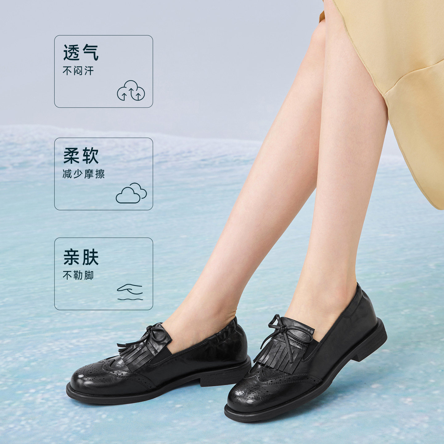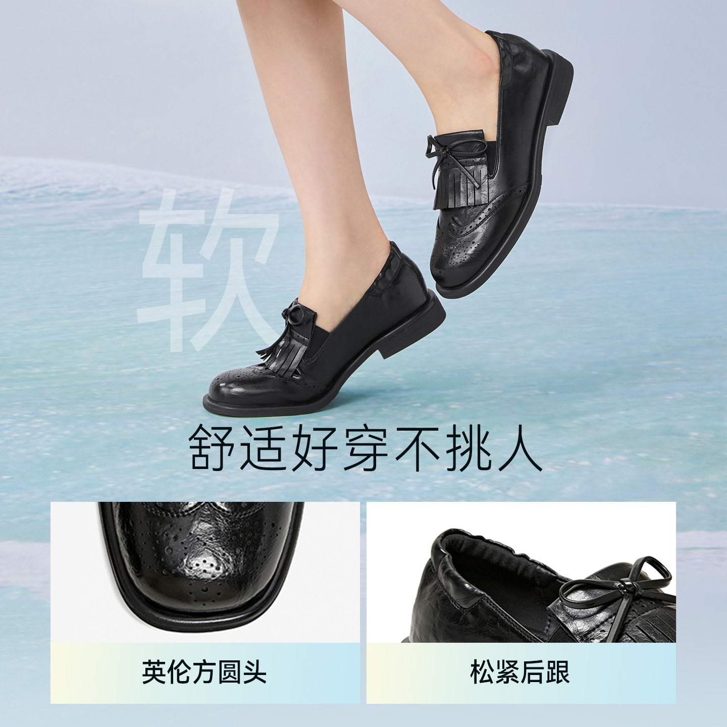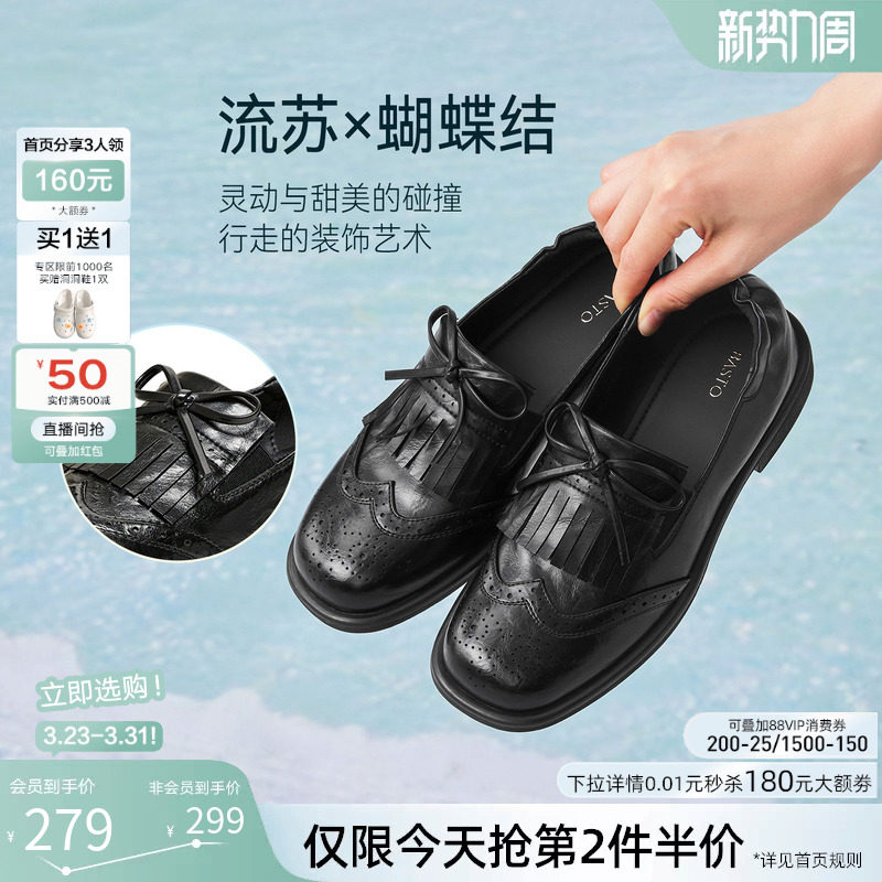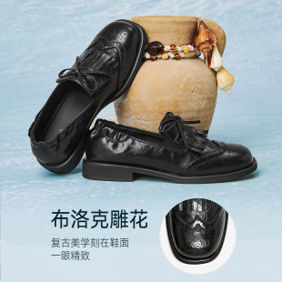 粗跟女厚底单鞋 百思图2026春季 皮鞋 布洛克流苏乐福鞋 R1716AA6 新款