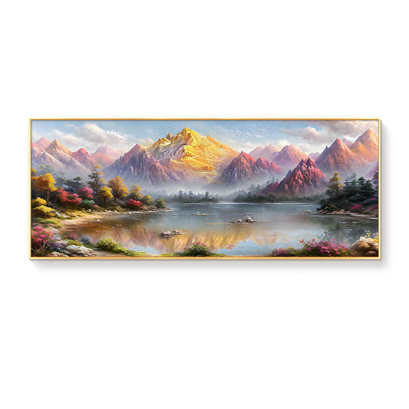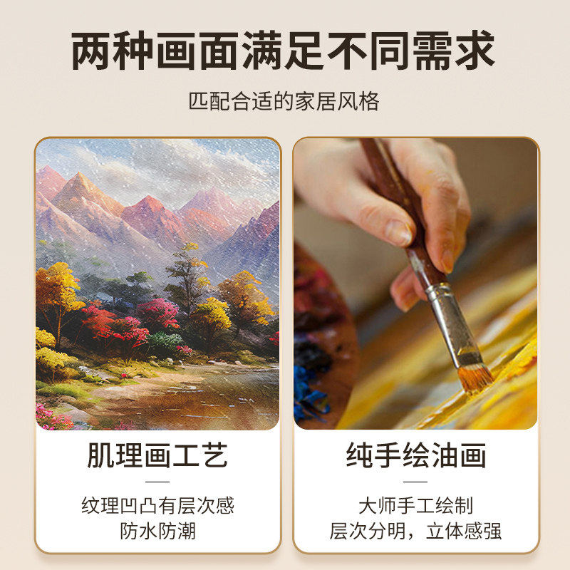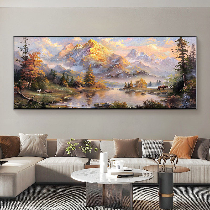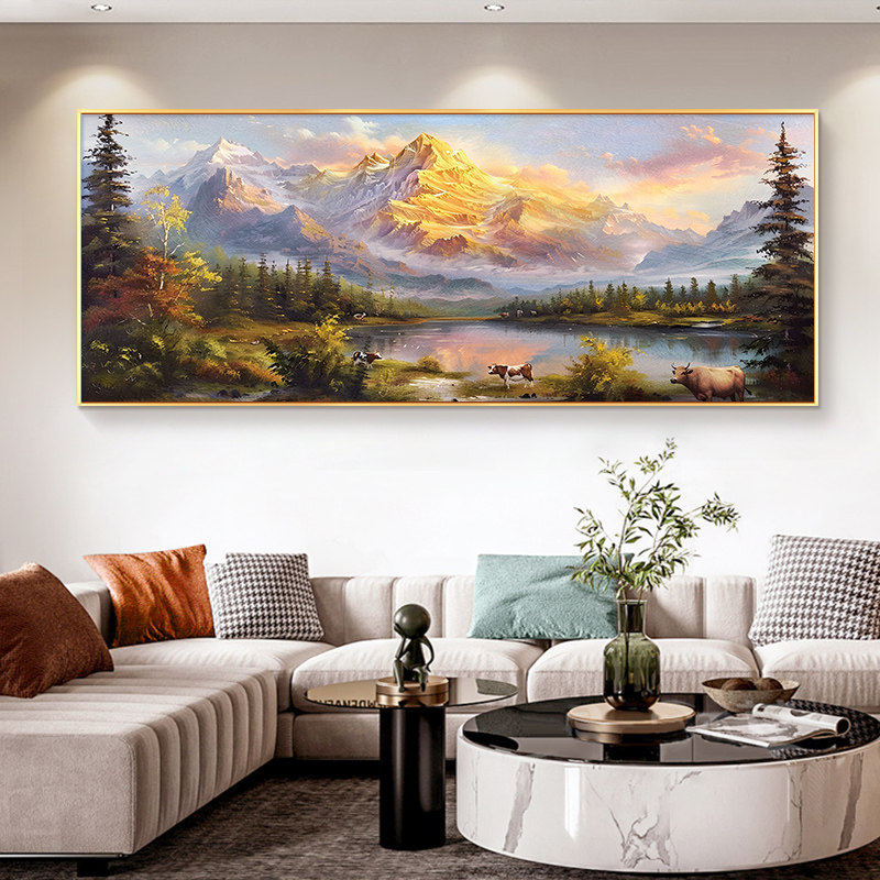 日照金山手绘油画客厅挂画沙发背景墙装 饰画西墙聚财山水风景壁画