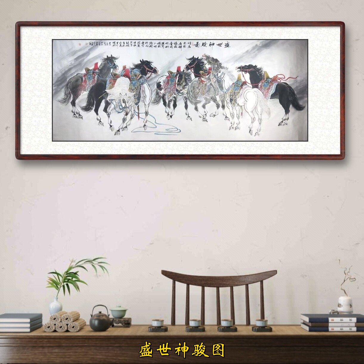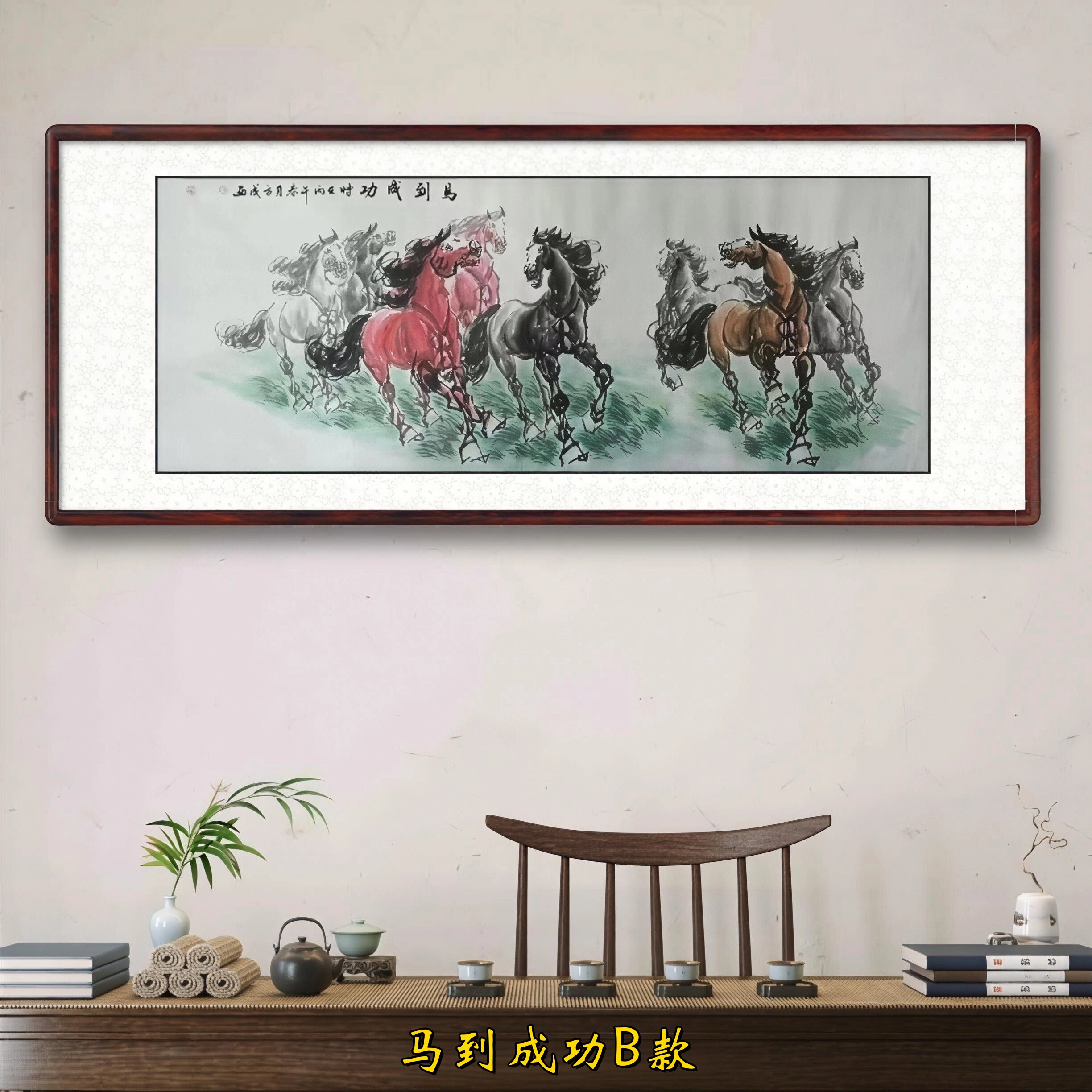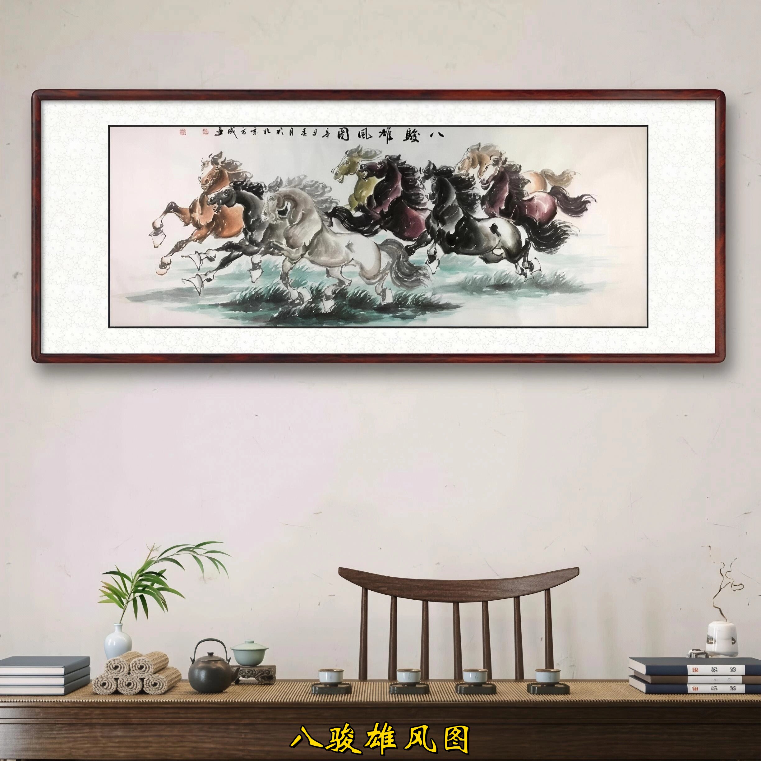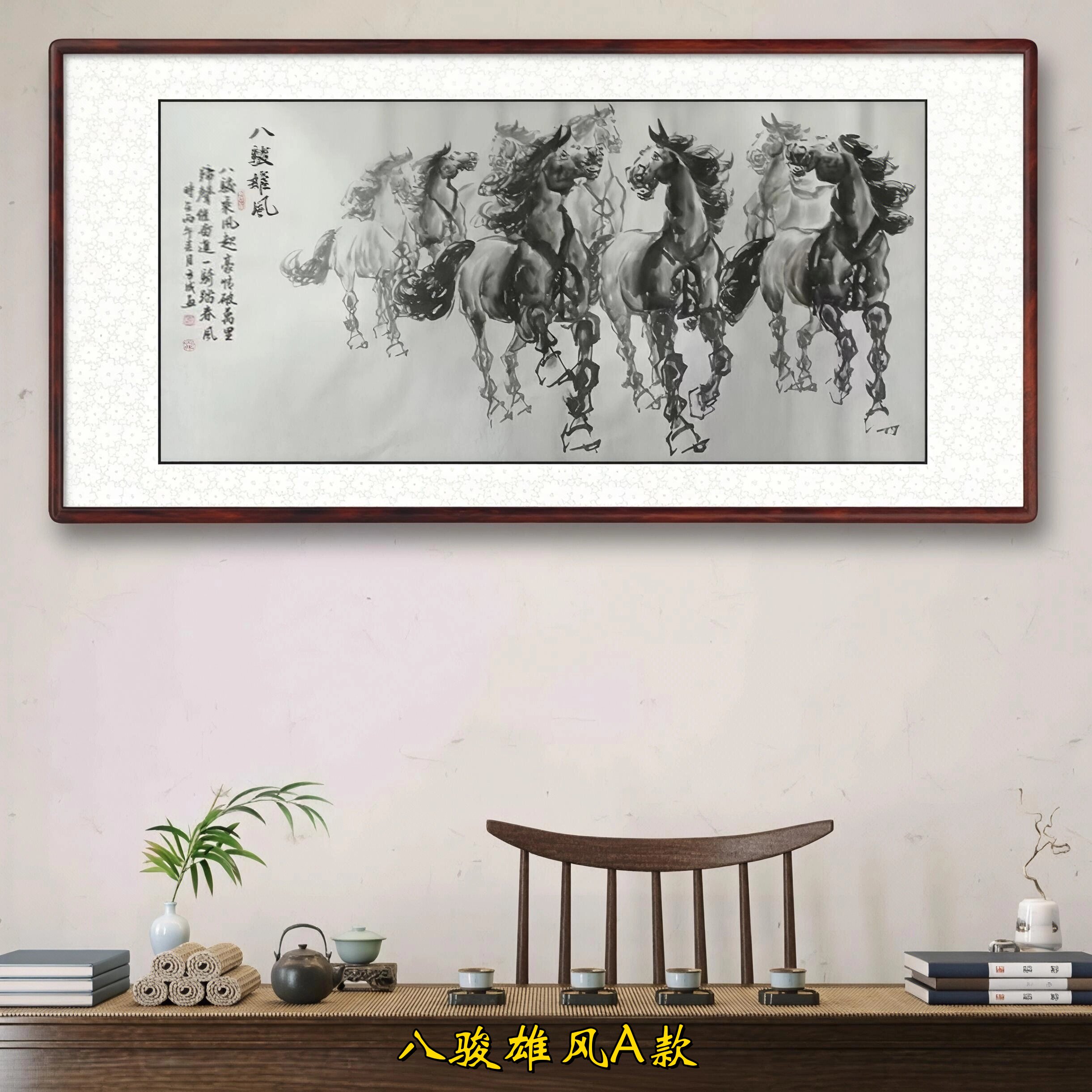 国画马到成功客厅墙壁挂画八骏图新中式 饰画马年 山水画办公室装