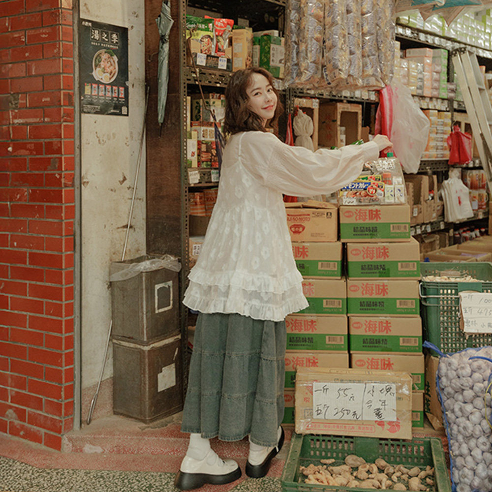 背心 QUEENSHOP 立体花荷叶透肤罩衫 女装 白01099505 2026春夏新品