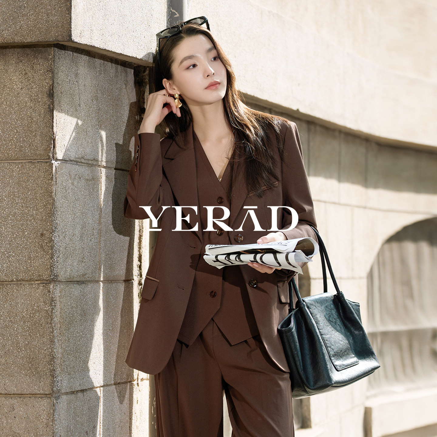 新款 外套女春季 复古廓形咖色西服 高级老钱风西装 娅丽达气质套装