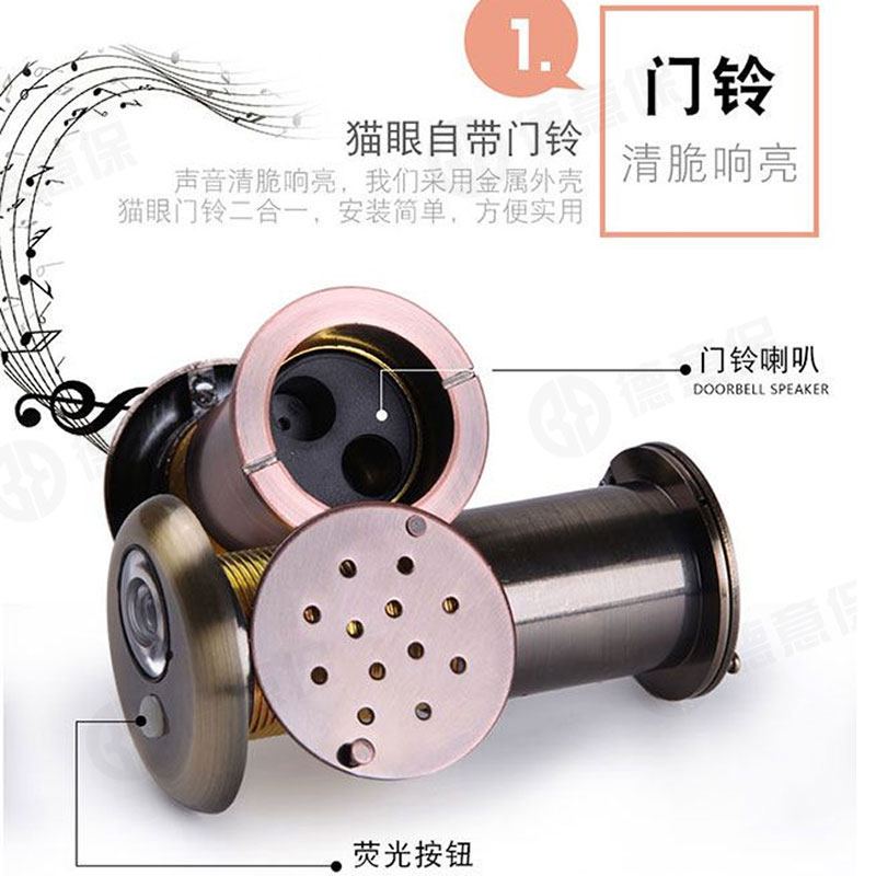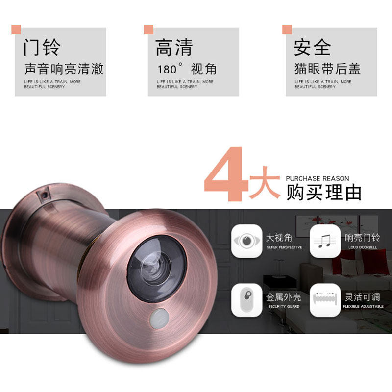家用防盗门猫眼高清金属门镜带门铃一体二合一老式 通用35mm带后盖