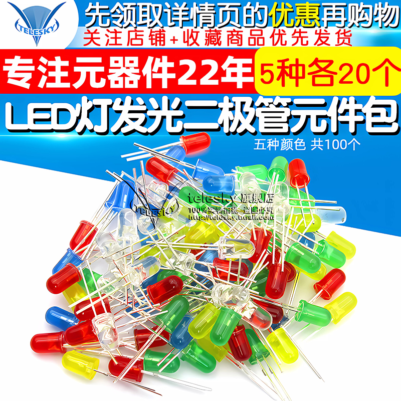 5V24V22V 灯指示灯小灯泡F5彩色二级管 5mm发光二极管led灯珠发光