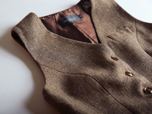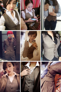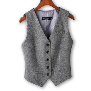 时尚 马甲女潮 人字呢加厚西服背心马夹 复古修身 英伦秋冬流行女装
