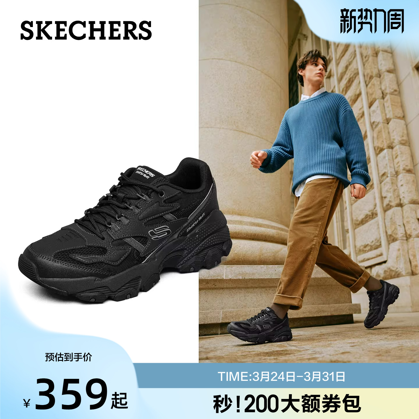 男款 运动鞋 舒适户外休闲熊猫鞋 厚底老爹鞋 斯凯奇夏季 子男鞋 新款