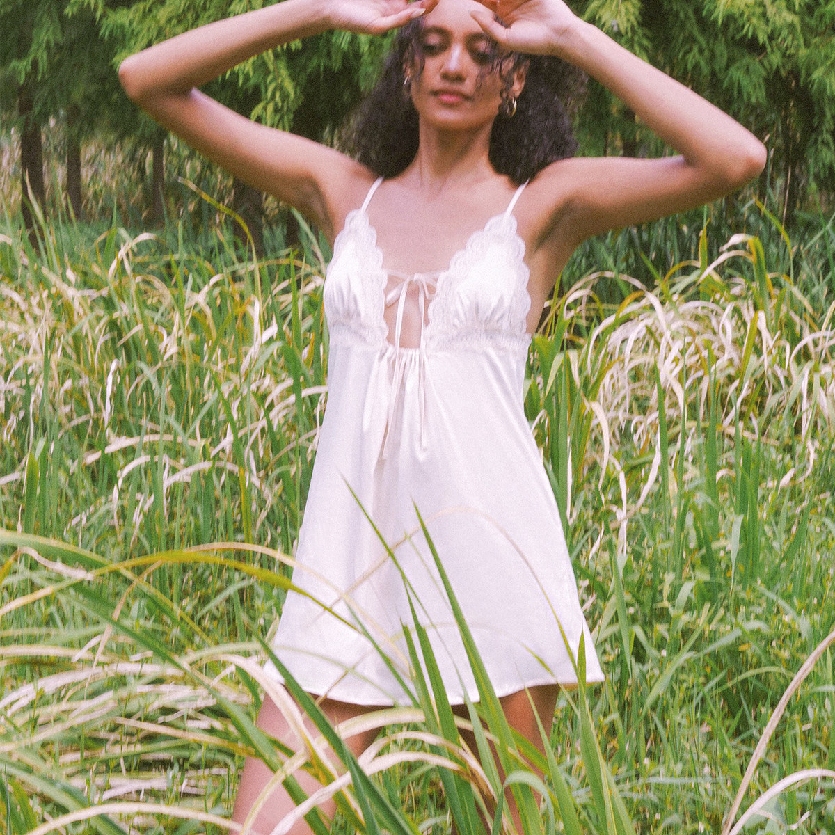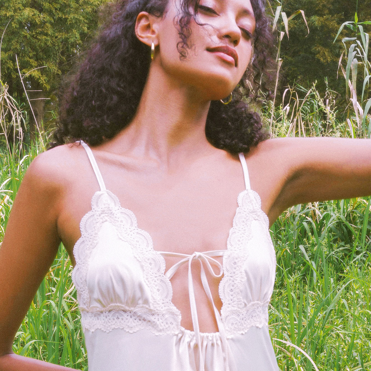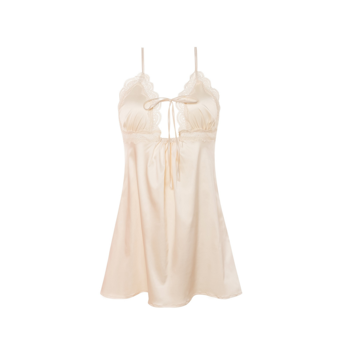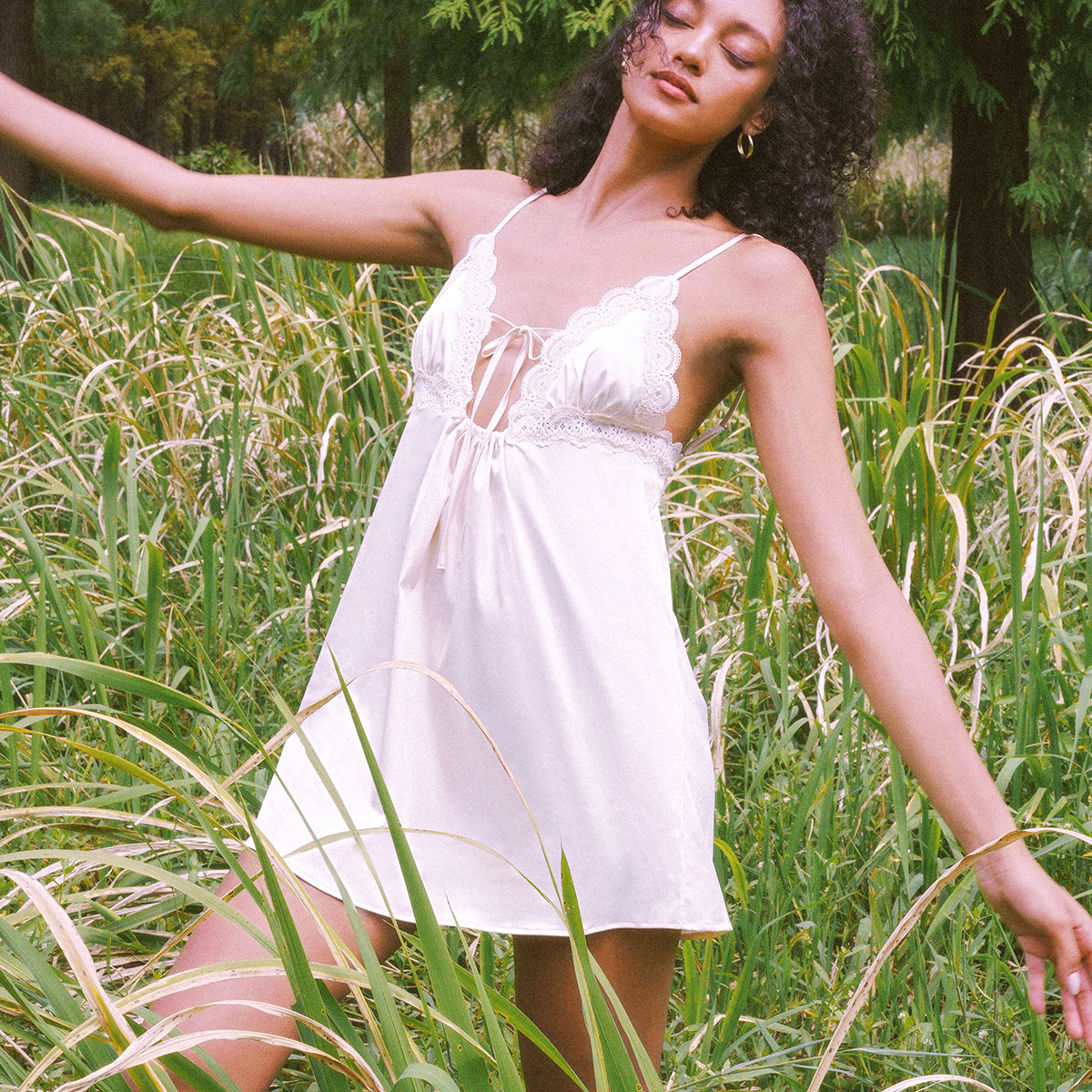 今夕何夕性感睡衣女秋冬季 蕾丝纯欲风带胸垫冰丝吊带睡裙 2025新款