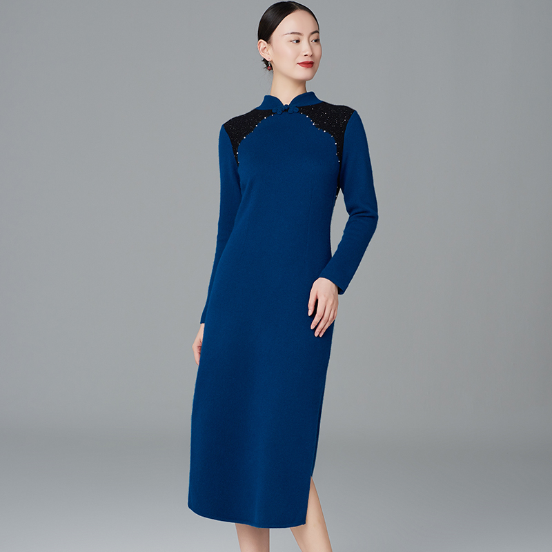 显瘦羊绒衫 修身 女加厚毛衣裙暖 羊绒连衣裙女长裙针织打底衫 中长款
