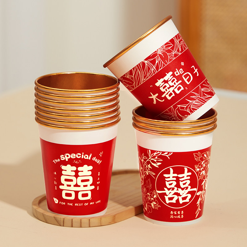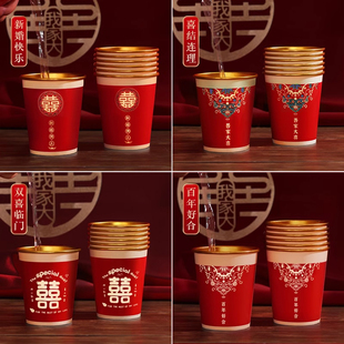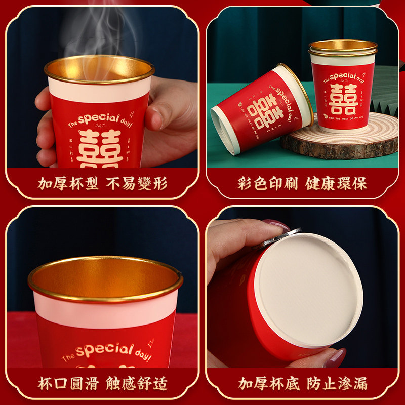 结婚纸杯一次性喜杯子婚礼敬茶水杯加厚婚宴红色金箔茶杯用品大全