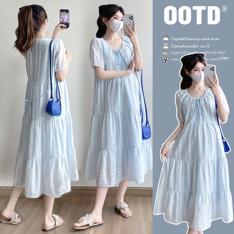 大码 透气宽松显瘦过膝长裙夏季 遮肚连衣裙 小清新薄款 孕妇裙子夏装