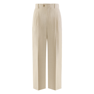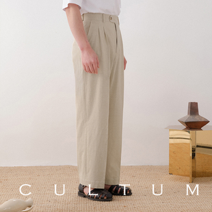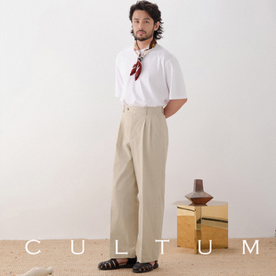 男休闲裤 CULTUM极简老钱风松弛慵懒阔腿高腰双褶西裤 透气棉麻