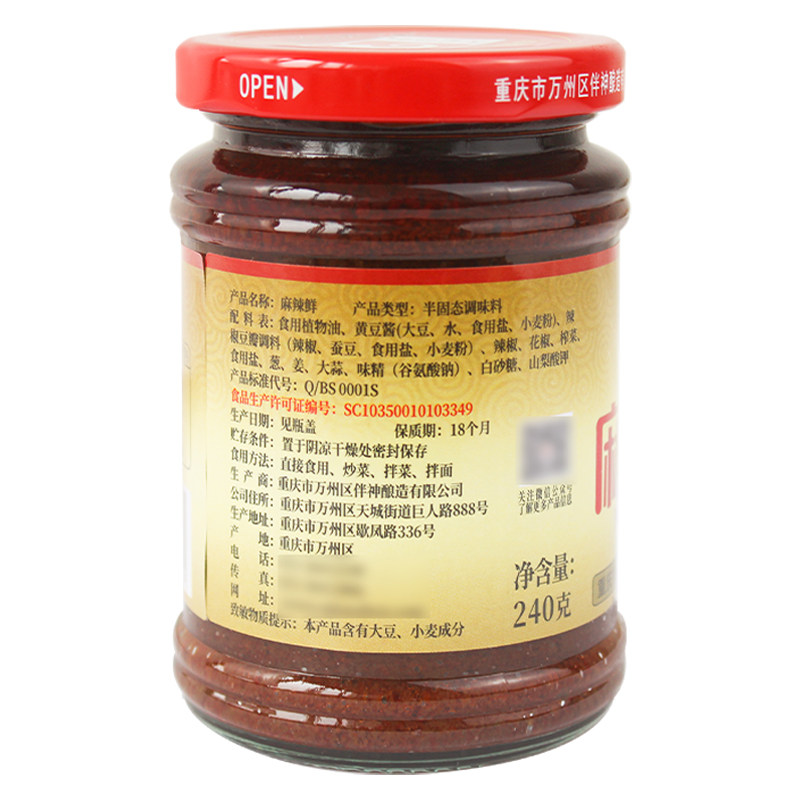 百年伴神麻辣鲜240g瓶装 辣椒酱调味料拌饭拌面凉菜家用万州特产