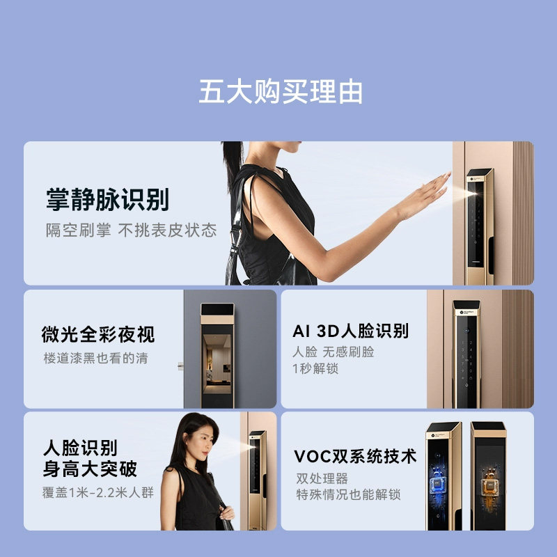 VOC智能门锁掌静脉指纹锁人脸识别家用防盗门电子密码 Max 锁V70