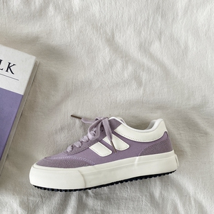 爆款 学生厚底休闲板鞋 紫色帆布鞋 春夏透气小白鞋 女2026新款 喜叔