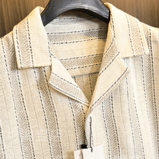 镂空针织 衬衫 2025年夏季 外贸单大翻领透气肌理半袖 男士 复古画风