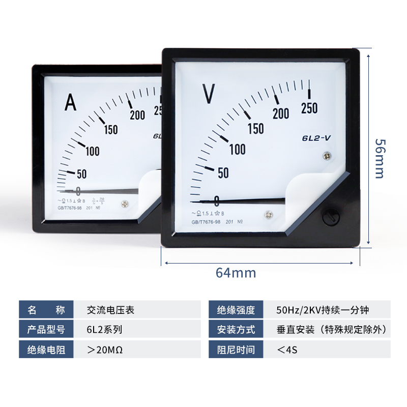 6L2型指针式 交流电流表频率表50HZ直通30A三相功率因素表380v电压