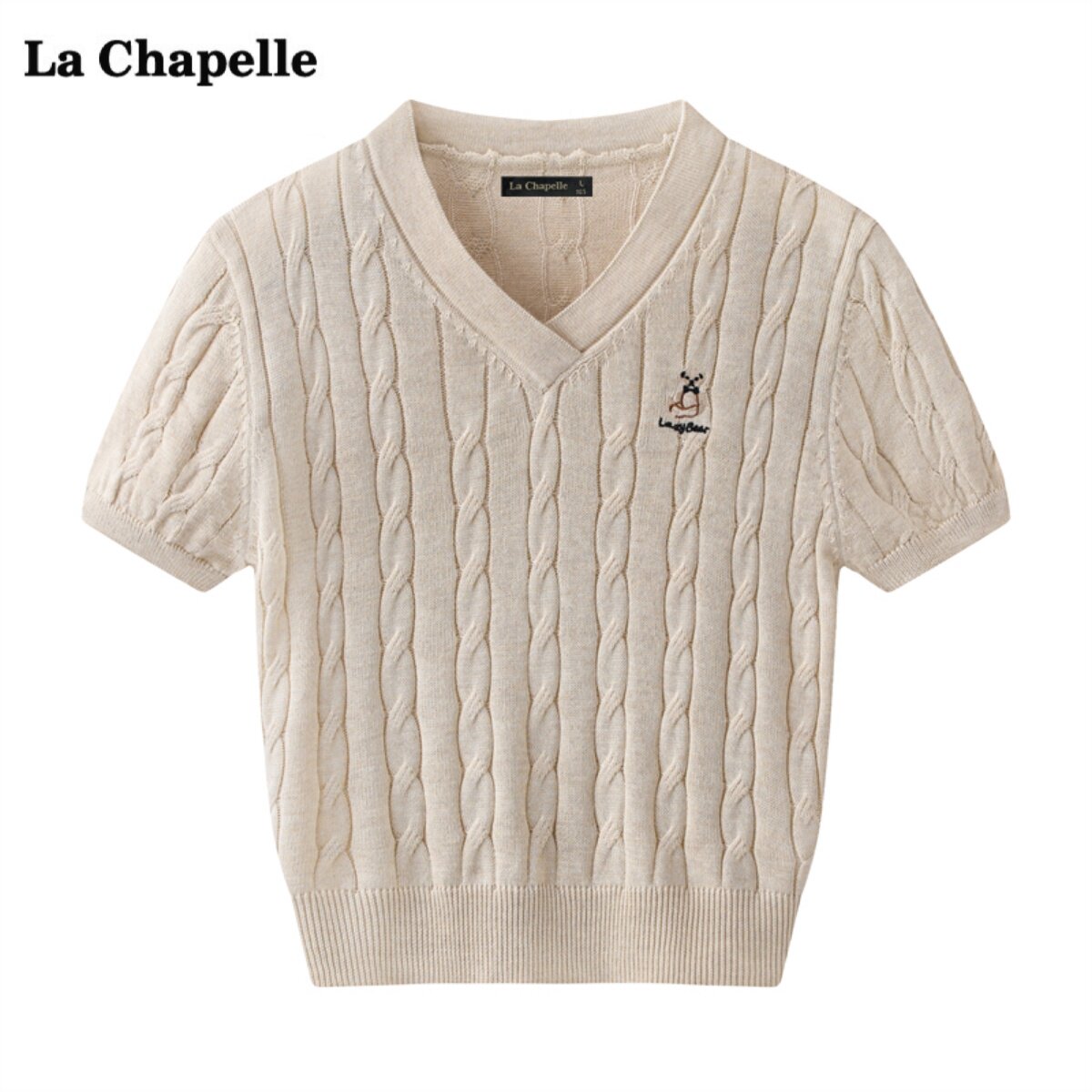 针织衫 Chapelle卡通刺绣V领短袖 女夏季 新款 上衣 拉夏贝尔 薄款